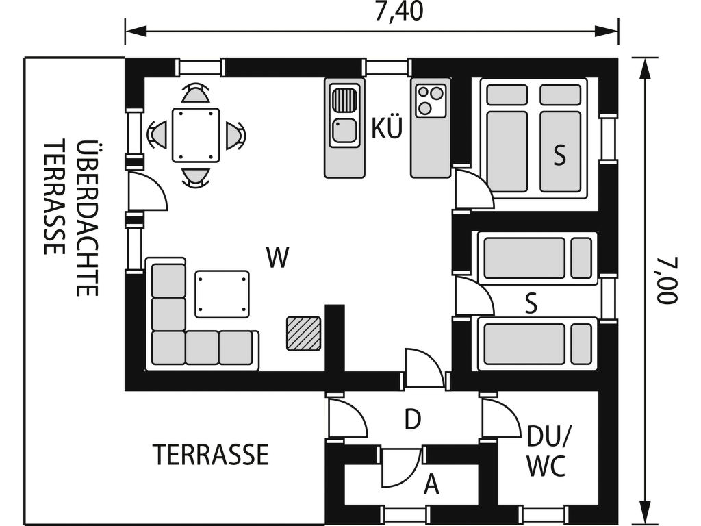 Wohnfläche 50 m². 4 Ceranfelder, Backofen, Mikrowelle, Kühlschrank, Gefriertruhe und Waschmaschine zur Mitbenutzung, Kaffeemaschine, Wasserkocher, Toaster. Sat-TV (deutsche Programme), CD, Internetzugang (WLAN, inklusive). Dusche/WC. Elektroheizung, Kaminofen. Einzelbetten jeweils 0,75 m breit.