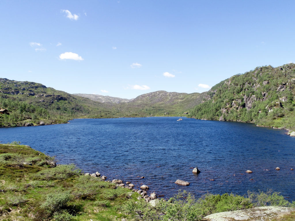 Das gemütliche Ferienhaus mit Blick auf den ca. 80 m entfernten See Farvatn steht auf ca. 720 m Höhe im Ferienhausgebiet Ljosland (Kaufmann 3 km), inmitten einer herrlichen Hochgebirgslandschaft. Mandal liegt 104 km südlich, Kristiansand 110 km südöstlich. Empfehlenswerte Tagesausflüge entlang der malerischen Küste zwischen Mandal und Kristiansand. Idealer Ausgangspunkt für ausgedehnte Wanderungen auf markierten Pfaden. Bademöglichkeit von Felsen (ca. 80 m). Kanu für drei Personen vorhanden. Gute Angelmöglichkeiten. Lage auf einem offenen 600 m2 großen Naturgrundstück. Teilüberdachte Terrasse mit Gartenmöbeln und transportablem Außengrill. Parken beim Haus.