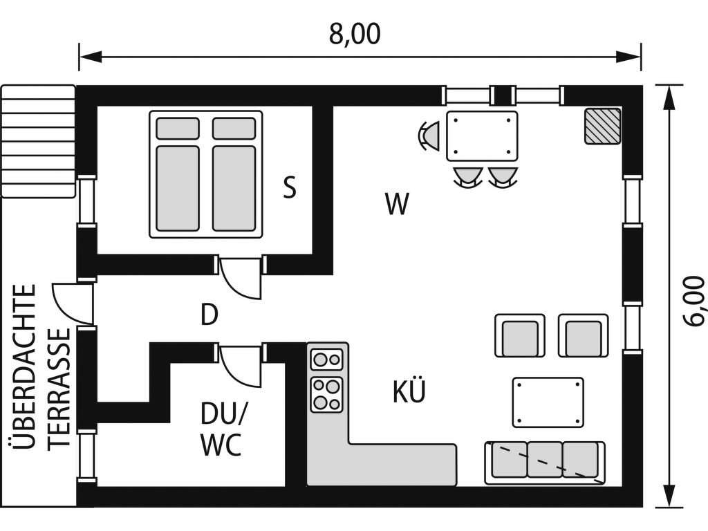 Wohnfläche 48 m². E-Herd 4 Platten, Backofen, Mikrowelle, Kühlschrank, Gefrierschrank (ca. 100 l), Kaffeemaschine. Waschmaschine zur Mitbenutzung beim Besitzer. Sat-TV (deutsche Programme). Dusche/WC. Elektroheizung, Kaminofen. Maximale Belegung: 2 Erwachsene und 1 Kind. Ferienhäuser FJH 412 - 415 ca. 80 - 200 m entfernt.