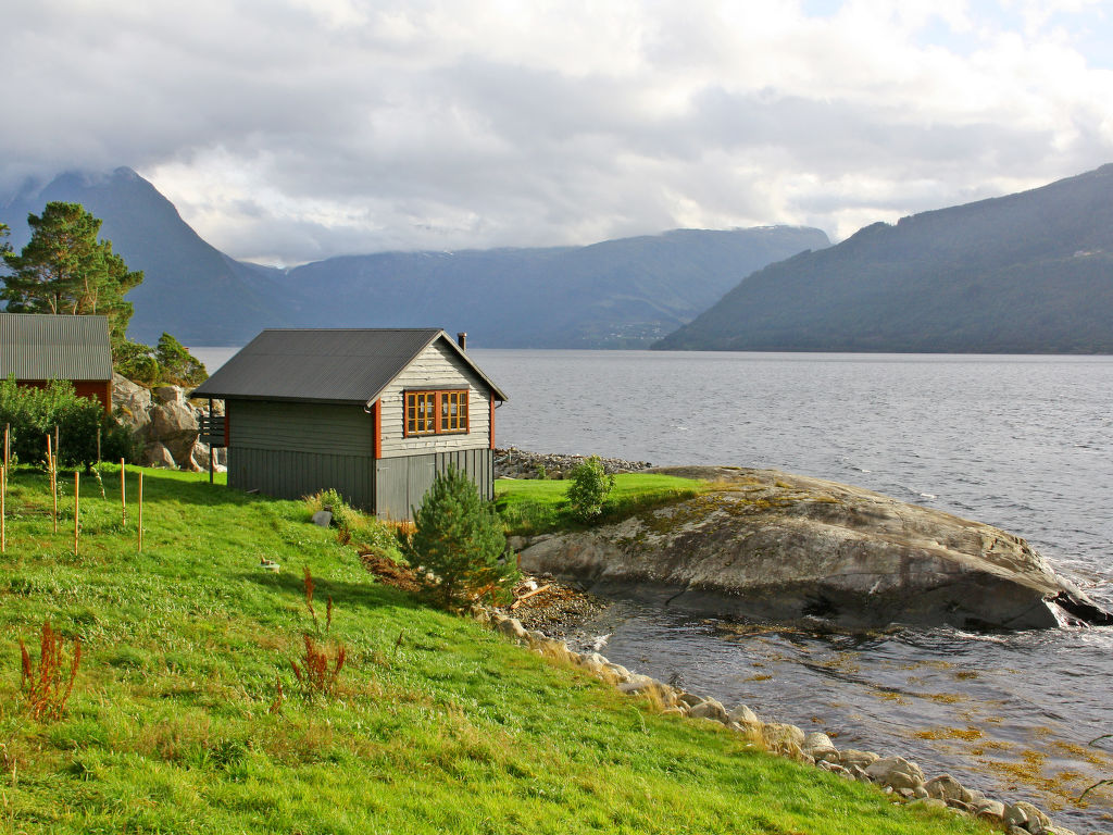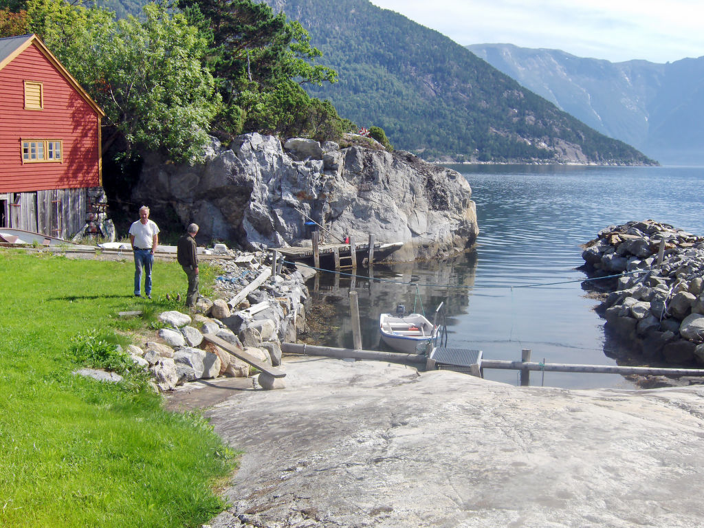 Das sympathische Ferienhaus, ein gemütliches, typisches Rorbu, steht in traumhafter Lage direkt am Hardangerfjord bei Tjoflot. Kaufmann 26 km in Granvin. Voss liegt 51 km nordwestlich, Odda 75 km südlich. Empfehlenswert sind Ausflüge zu den mächtigen Wasserfällen Skjervsfossen (35 km) und Espelandsfossen (36 km). Schönes Wandergebiet mit Pfaden verschiedener Schwierigkeitsgrade. Baden von Felsen. 15-Fuß-Ruderboot vorhanden, 5-PS-Motor (NOK 500 pro Woche) auf Bestellung zu mieten. Gute Angelmöglichkeiten, Fischverarbeitungsplatz und Räuchermöglichkeit zur Mitbenutzung. Das Haus liegt auf einem Wiesengrundstück mit Obstbäumen. Gute Einrichtung mit viel Holz. Kleine, überdachte Terrasse mit Gartenmöbeln und transportablem Außengrill. Parken ca. 15 m, Pfad zum Haus.