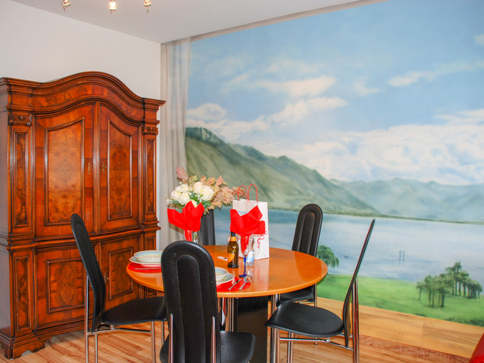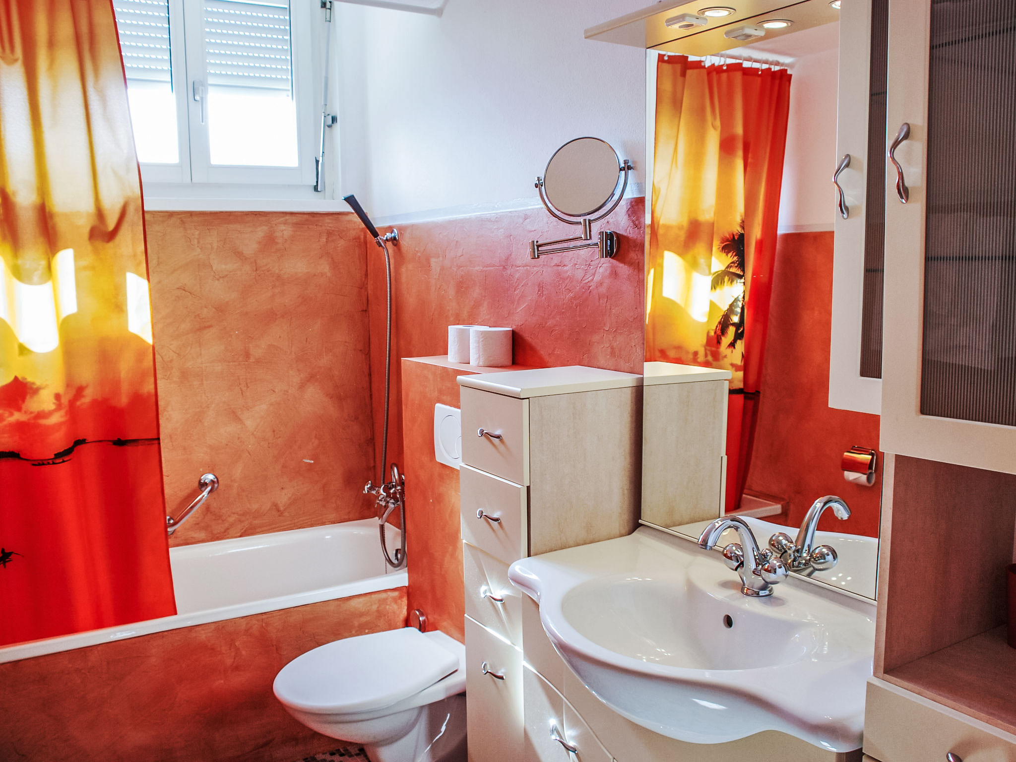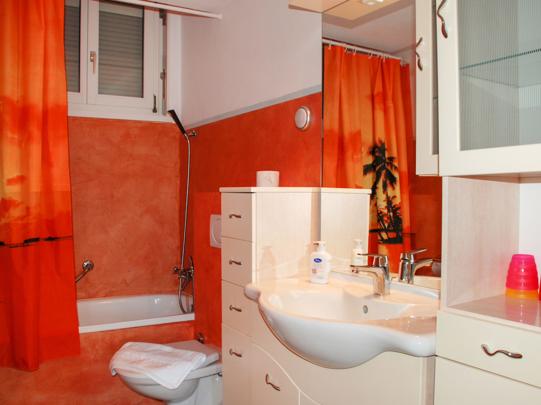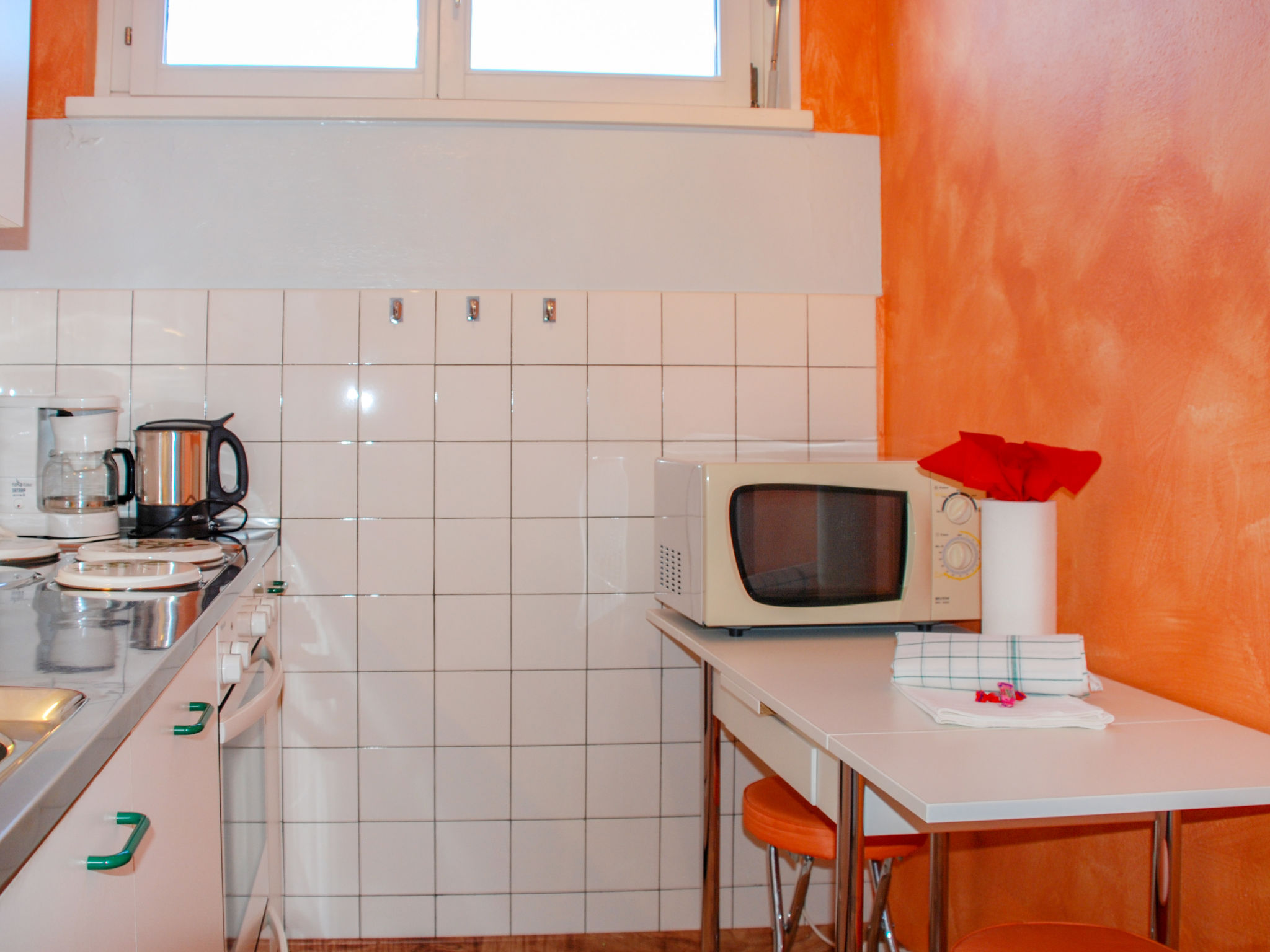 1-Zimmer-Wohnung 50 m2 im 5. Stock, Südwestlage. Geräumig und hell, modern und gemütlich eingerichtet: offenes Wohn-/Esszimmer mit 2 Wandschrankbetten (90 cm, Länge 200 cm), Esstisch und Kabel-TV (Flachbildschirm), Radio. Ausgang zum Balkon. Kleine Küche (3 Kochplatten, Backofen, Mikrowelle). Bad/WC. Balkon 11 m2, Westlage und Nordlage. Balkonmöbel, Liegestühle (2). Seitliche Sicht auf den See, die Berge und die Landschaft. Zur Verfügung: Haartrockner. Internet (Wireless LAN, gratis). Bitte beachten: Nichtraucher-Unterkunft.