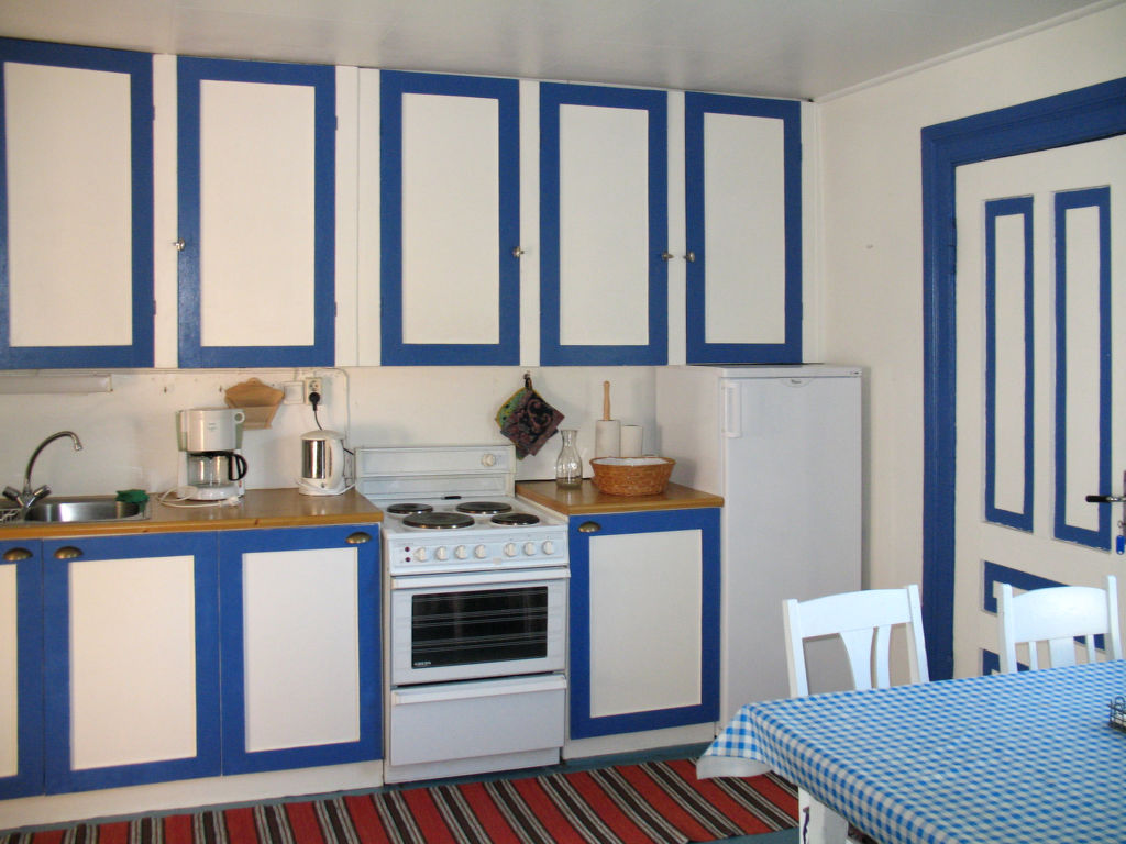 Wohnfläche 95 m². E-Herd 4 Platten, Backofen, Kühlschrank, Gefrierschrank (ca. 50 l), Kaffeemaschine, Wasserkocher, Münzwaschmaschine (zur gemeinsamen Benutzung, ca. 100 m). Dusche/WC. Sat-TV (deutsche Programme), Internetzugang (WLAN, inklusive). Elekroheizung, Kaminofen (Kaminholz inklusive).