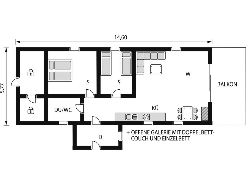 Wohnfläche 100 m². 4 Ceranfelder, Backofen, Mikrowelle, Geschirrspüler, Kühlschrank, Kühl-/Gefrierkombination, Kaffeemaschine, Wasserkocher, Toaster, Waschmaschine. Sat-TV (deutsche Programme), DVD, CD, Internetzugang (WLAN, inklusive). Dusche/WC. Elektroheizung, Kaminofen. Steile Treppe zur offenen Galerie (Dachschrägen) mit Doppelbettcouch und Einzelbett. Maximale Belegung: 6 Personen. Ferienwohnung FJS 026 ca. 40 m entfernt. Flexibilität bei der Bettenaufteilung: Es stehen mehr Schlafmöglichkeiten zur Verfügung als die maximal zugelassene Personenzahl, diese darf dennoch nicht überschritten werden.