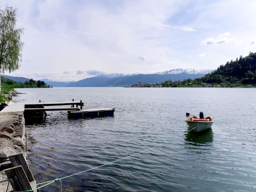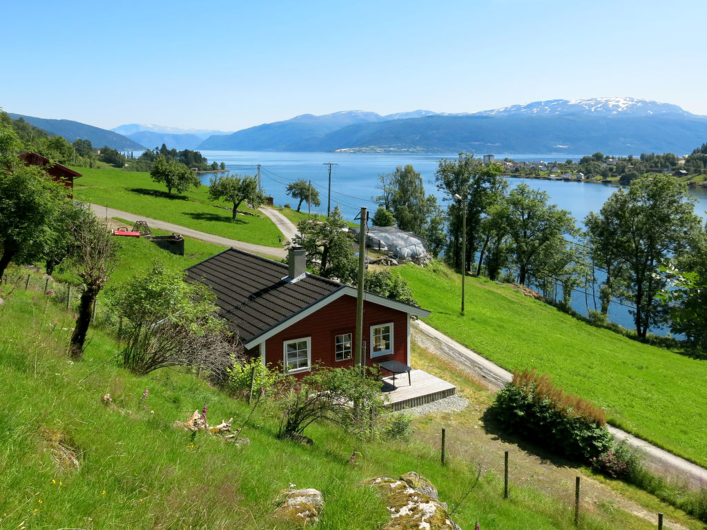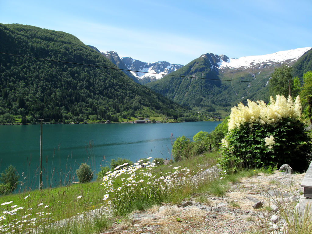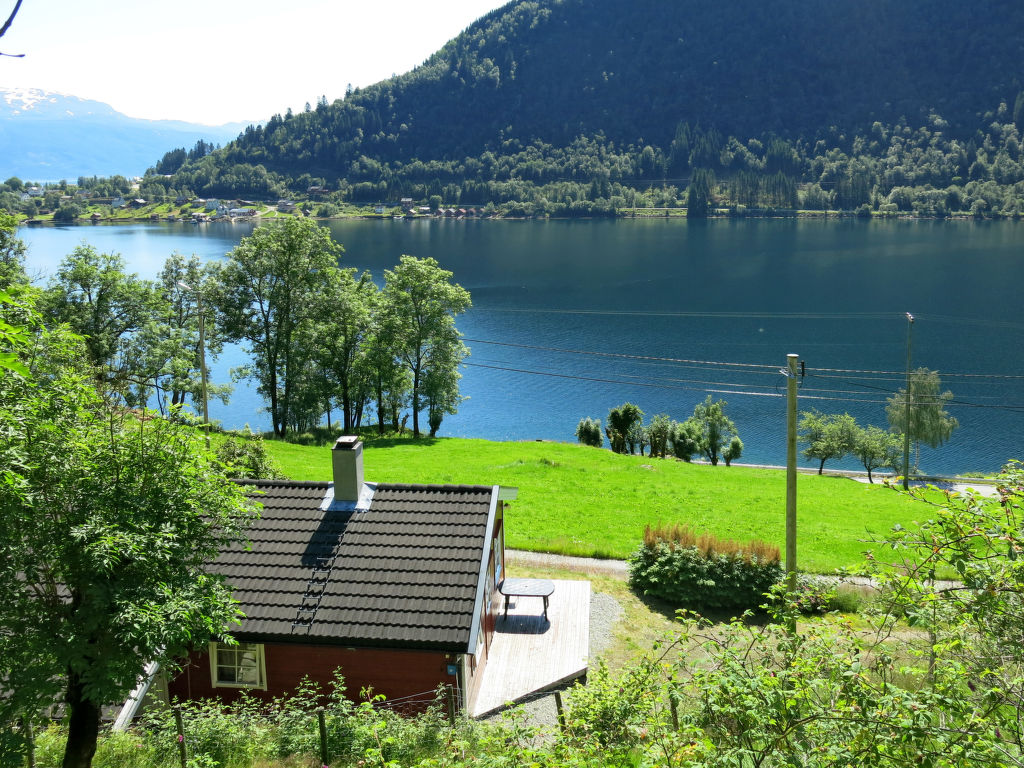 Hübsches Ferienhaus in wunderschöner Aussichtslage, mit Blick auf den ca. 100 m entfernten Esefjord. In Balestrand (7 km) gute Einkaufsmöglichkeiten und Restaurant. Sogndal liegt 40 km (+ Fähre) östlich, Høyanger 51 km westlich. Herrliches Wandergebiet mit zahlreichen markierten Pfaden in der näheren Umgebung. Baden am öffentlichen Strand in Balestrand. Gute Angelmöglichkeiten. 14-Fuß-Boot mit 15-PS-Motor (NOK 2000 pro Woche) auf Bestellung zu mieten. Das gemütlich, mit viel Holz eingerichtete Ferienhaus steht in ländlicher Umgebung mit Wiesen und Obstbäumen. Terrasse mit Gartenmöbeln und transportablem Außengrill. Parken beim Haus.