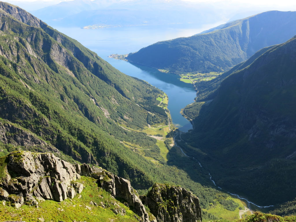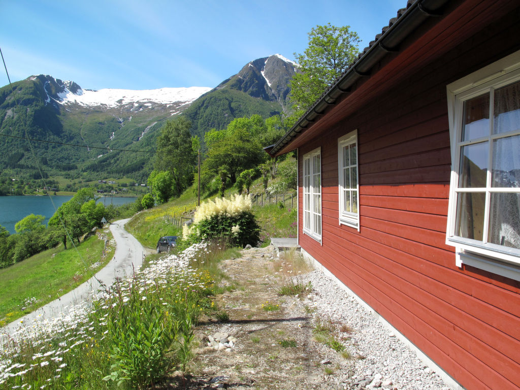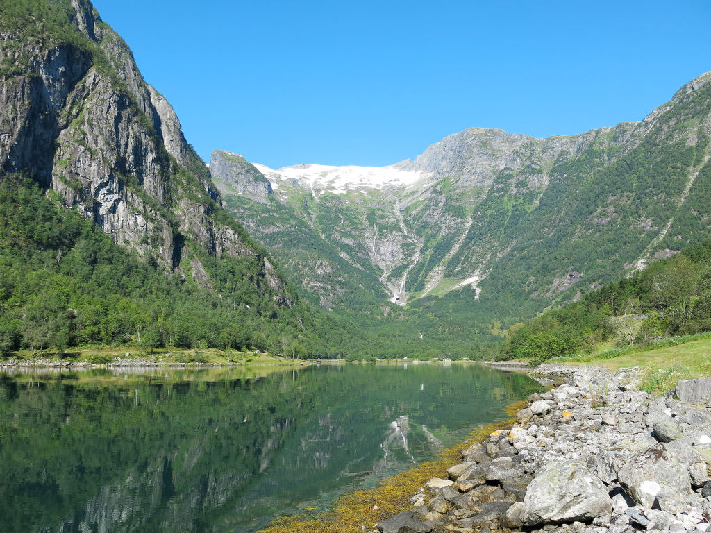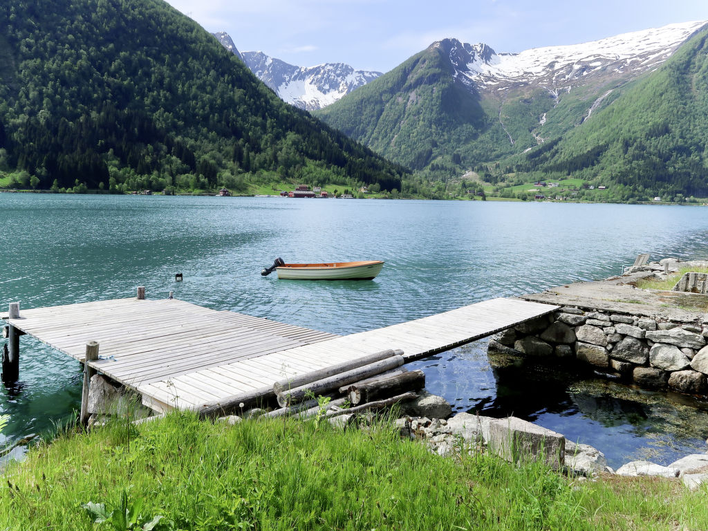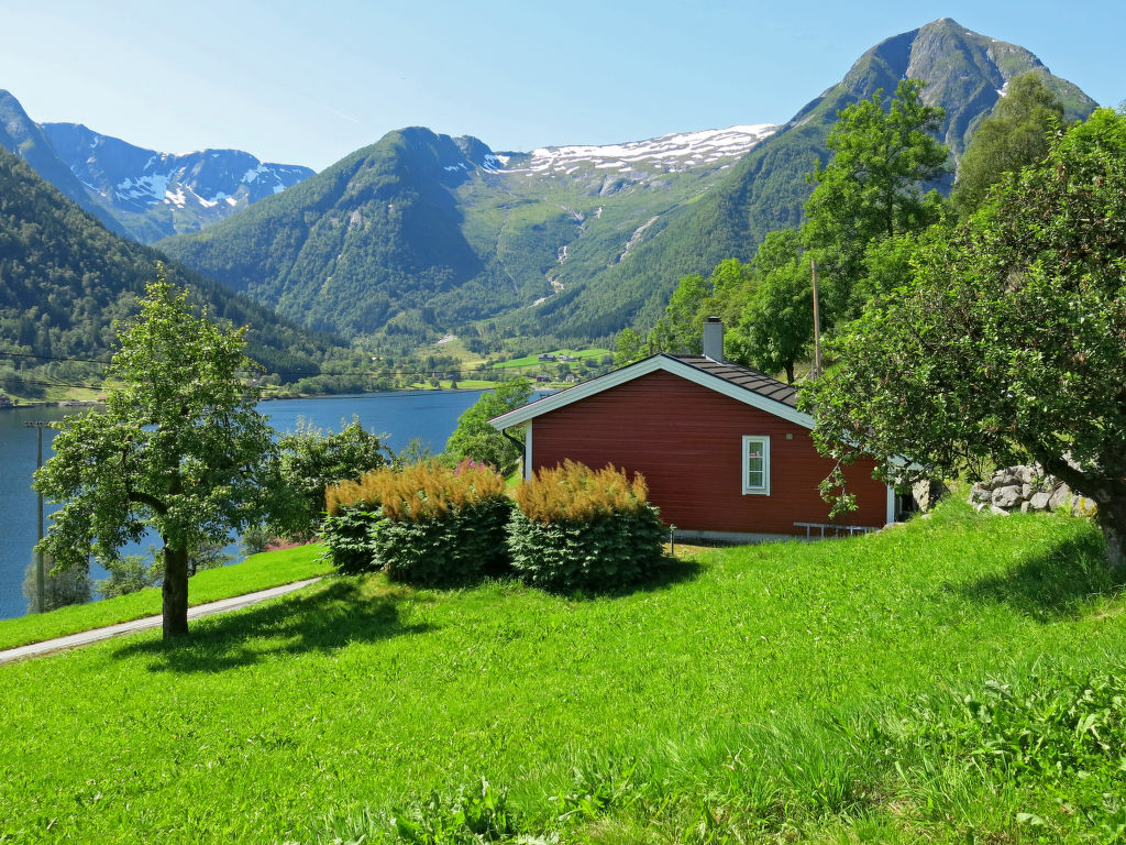 Hübsches Ferienhaus in wunderschöner Aussichtslage, mit Blick auf den ca. 100 m entfernten Esefjord. In Balestrand (7 km) gute Einkaufsmöglichkeiten und Restaurant. Sogndal liegt 40 km (+ Fähre) östlich, Høyanger 51 km westlich. Herrliches Wandergebiet mit zahlreichen markierten Pfaden in der näheren Umgebung. Baden am öffentlichen Strand in Balestrand. Gute Angelmöglichkeiten. 14-Fuß-Boot mit 15-PS-Motor (NOK 2000 pro Woche) auf Bestellung zu mieten. Das gemütlich, mit viel Holz eingerichtete Ferienhaus steht in ländlicher Umgebung mit Wiesen und Obstbäumen. Terrasse mit Gartenmöbeln und transportablem Außengrill. Parken beim Haus.