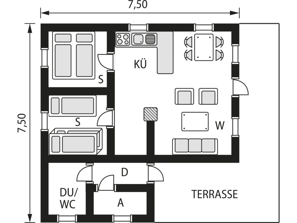 Wohnfläche 50 m². E-Herd 4 Platten, Backofen, Mikrowelle, Geschirrspüler, Kühlschrank, Gefriertruhe (ca. 105 l), Kaffeemaschine, Wasserkocher, Toaster, Waschmaschine. Sat-TV (deutsche Programme), Internetzugang (WLAN, inklusive). Dusche/WC. Elektroheizung, im Bad Fußbodenheizung, Kaminofen.