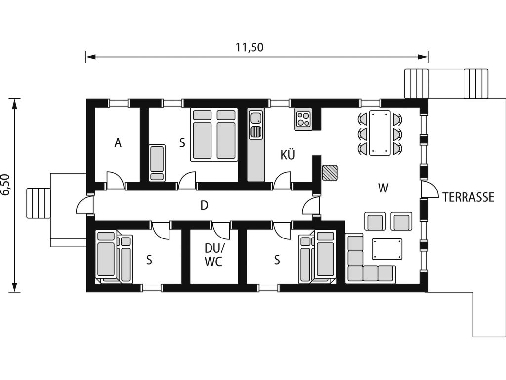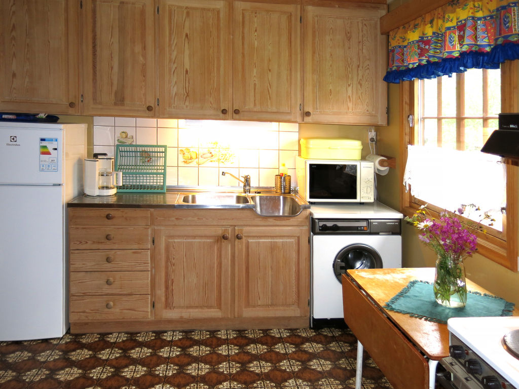 Wohnfläche 90 m². E-Herd 4 Platten, Backofen, Mikrowelle, Kühlschrank, Kaffeemaschine, Waschmaschine, Trockenschrank. TV. Dusche/WC. Elektroheizung, im Bad Fußbodenheizung, Kaminofen. Maximale Belegung: 6 Personen. Flexibilität bei der Bettenaufteilung: Es stehen mehr Schlafmöglichkeiten zur Verfügung als die maximal zugelassene Personenzahl, diese darf dennoch nicht überschritten werden.