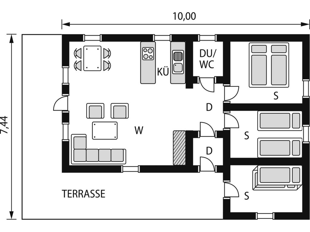 Wohnfläche 60 m². E-Herd 4 Platten, Backofen, Kühlschrank, Gefrierschrank, Kaffeemaschine, Wasserkocher, Toaster, Waschmaschine. TV. Elektroheizung, im Bad Fußbodenheizung, Kamin (Kaminholz inklusive). Dusche/WC. Ferienhaus FJS 106 ca. 250 m entfernt.