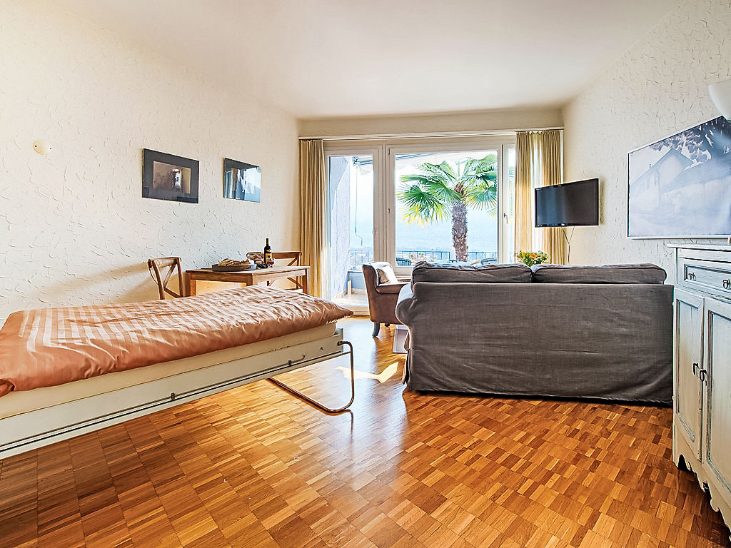 "Double Room Classic", 1-Zimmer-Wohnung 35 m2 im 1. Stock, Südlage. Wohn-/Esszimmer mit 2 Klappbetten, Sat-TV und Radio. Kochnische (Backofen, elektrische Kaffeemaschine, Kapseln für die Kaffeemaschine (Nespresso) extra). Bad/WC. Balkon, Südlage. Schöne Sicht auf den See und die Berge. Zur Verfügung: Internet (Wireless LAN, gratis). Bitte beachten: Nichtraucher-Unterkunft, Nichtraucher-Haus. Maximal 1 Haustier/Hund erlaubt.