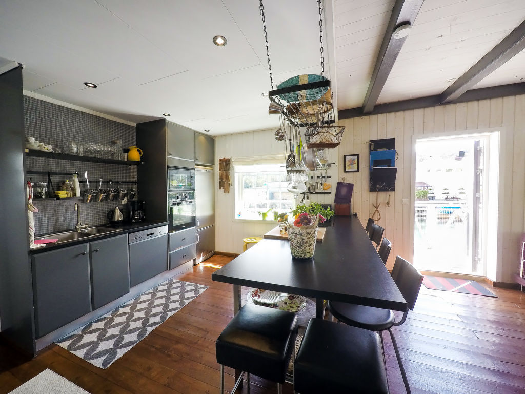 Wohnfläche 108 m². 4 Ceranfelder, Backofen, Mikrowelle, Geschirrspüler, Kühlschrank, Gefriertruhe (ca. 400 l), Kaffeemaschine, Waschmaschine. Sat-TV (deutsche Programme), DVD, CD, Internetzugang (WLAN, NOK 150 pro Woche, Bestellung). Bad/WC. Sep. WC. Elektroheizung, im Bad Fußbodenheizung. Maximale Belegung: 6 Personen. Flexibilität bei der Bettenaufteilung: Es stehen mehr Schlafmöglichkeiten zur Verfügung als die maximal zugelassene Personenzahl, diese darf dennoch nicht überschritten werden.