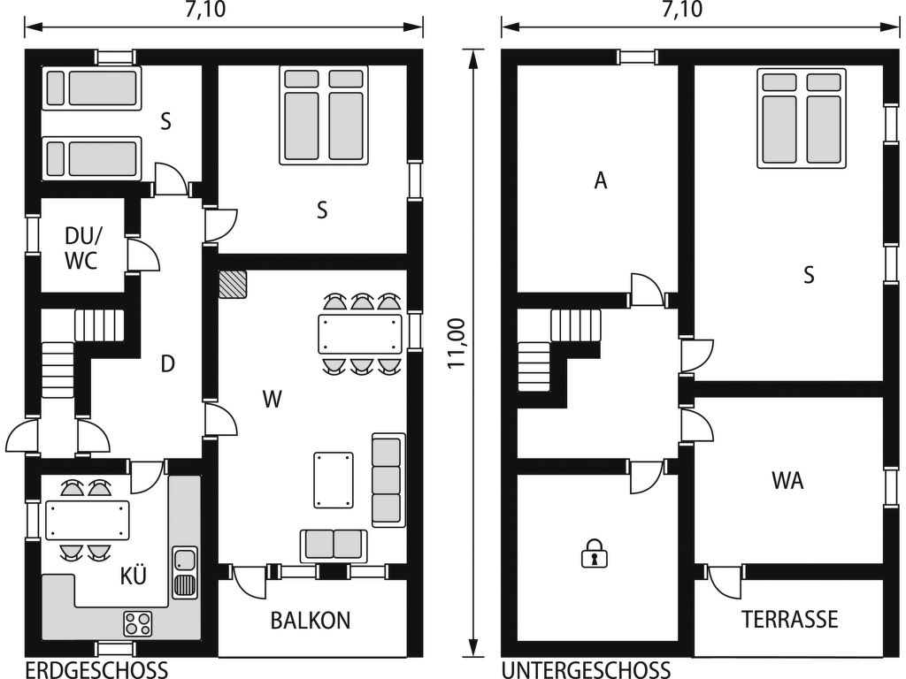 Wohnfläche 94 m². E-Herd 4 Platten, Backofen, Mikrowelle, Geschirrspüler, Kühlschrank, Gefriertruhe (ca. 80 l), Kaffeemaschine, Wasserkocher, Toaster, Waschmaschine, Trockenschrank. Sat-TV (deutsche Programme), DVD, Internetzugang (WLAN, inklusive). Dusche/WC. Elektroheizung, im Untergeschoss Fußbodenheizung, Kaminofen. Einzelbetten jeweils 0,75 m breit.