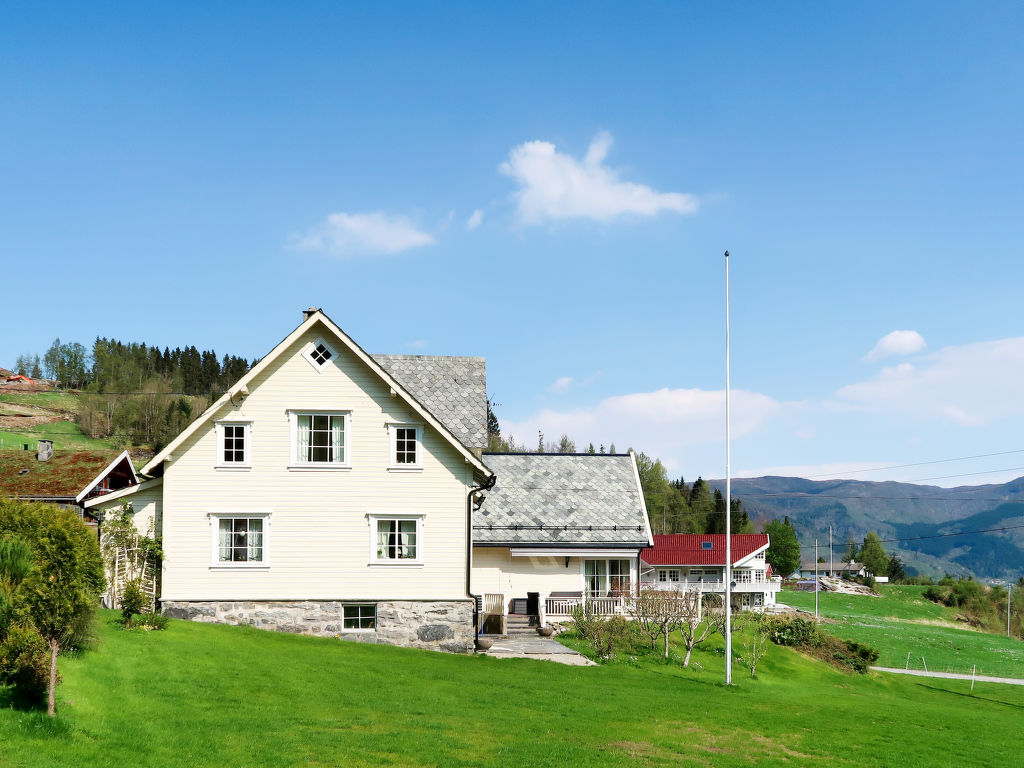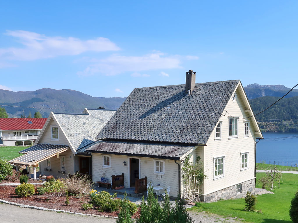 Das 2017 teilrenovierte Ferienhaus steht ländlich, in schöner Aussichtslage ca. 150 m vom Førdefjord, im Weiler Kvammen. Kaufmann 1 km. Førde liegt 31 km östlich. Gute Angelmöglichkeiten, Fischverarbeitungsraum mit Fließwasser vorhanden. In 1,5 km 15-Fuß-Boot mit 15-PS-Motor (NOK 1800 pro Woche) auf Bestellung zu mieten. Feriengerechte Einrichtung. Lage auf einem offenen Wiesengrundstück. Der Besitzer bewohnt einen Hausteil mit separatem Eingang. Terrasse mit Gartenmöbeln und transportablem Außengrill. Parken am Haus.