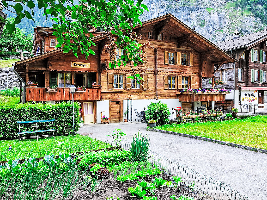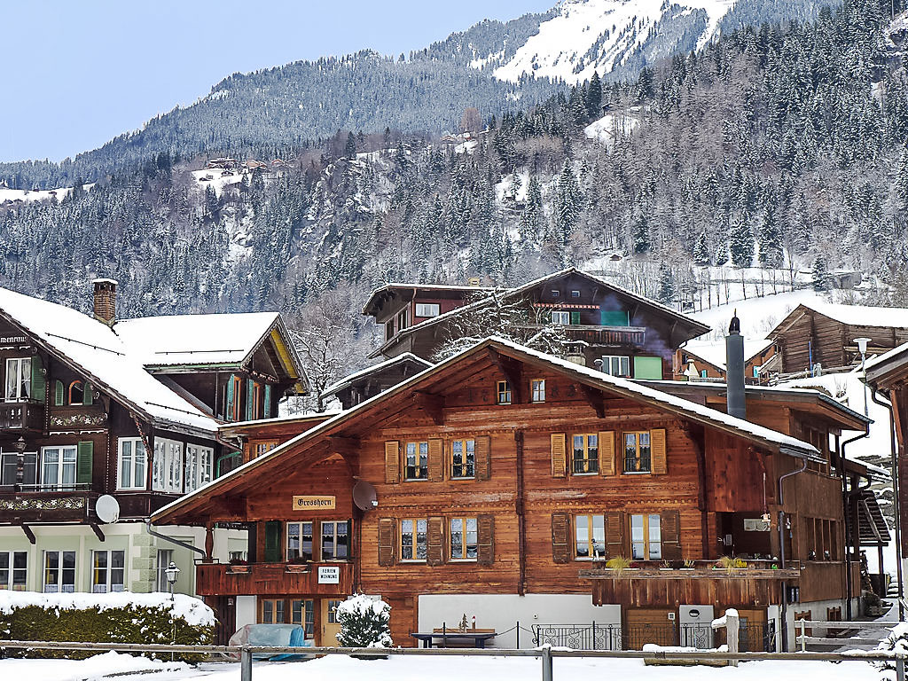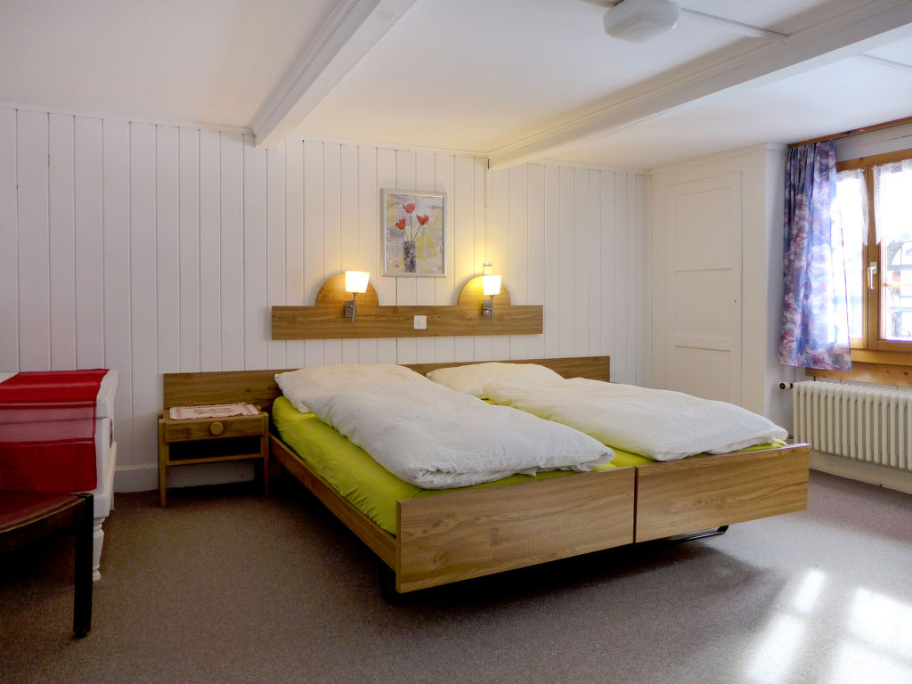 Lauterbrunnen: Rustikales, einfaches Chalet "Grosshorn", auf 2 Stockwerken. Im Ortsteil Ey, sonnige Lage in einem Wohnquartier, an einer Strasse. Im Hause: Einstellraum für Fahrräder, Skiraum, Zentralheizung. Parkplatz. Einkaufsgeschäft 300 m, Lebensmittelgeschäft 500 m, Supermarkt 600 m, Restaurant 200 m, Bushaltestelle 50 m, Bahnstation, Freibad 800 m. Tennis, Minigolf 200 m, Wanderwege ab Haus 50 m, Luftseilbahn 800 m, Skisportanlagen 4 km, Skibushaltestelle 50 m, Langlaufloipe, Eisfeld 200 m. Nahe gelegene Sehenswürdigkeiten: Trümmelbach Wasserfälle, Schilthorn Piz Gloria. Bekannte Skigebiete sind gut erreichbar: Mürren Schilthorn, Wengen - Kleine Scheidegg. Bekannte Seen in der Umgebung sind gut erreichbar: Brienzersee, Thunersee 15 km. Wandergebiete: UNESCO-Welterbe Jungfau-Aletsch, Mürren, Hinteres Lauterbrunnental. Bitte beachten: Gratis Skibus. Der gratis Skibus fährt zum Skigebiet Mürren-Schilthorn. Bitte beachten: Der Besitzer wohnt im selben Haus. Aussicht auf den Staubbachfall.