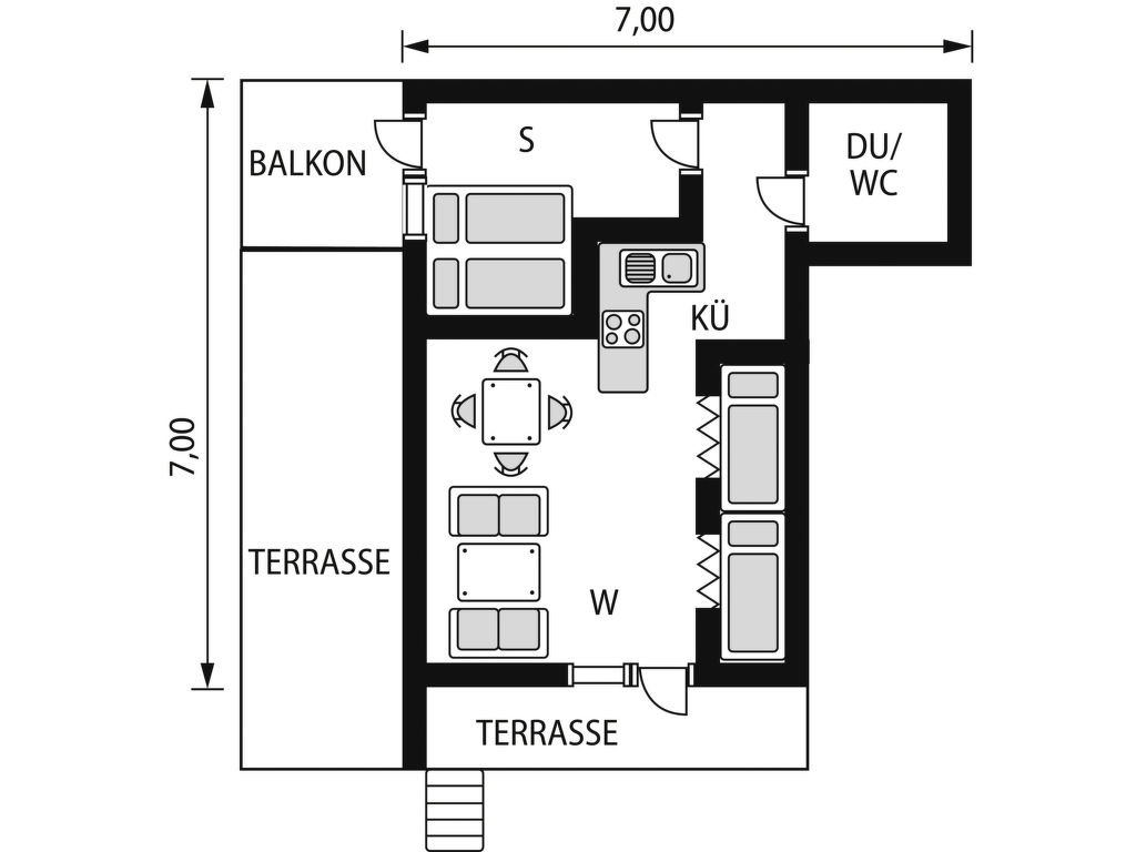 Wohnfläche 50 m². 3 Ceranfelder, Backofen, Mikrowelle, Kühlschrank, Gefriertruhe (ca. 120 l), Kaffeemaschine, Wasserkocher, Toaster. Münzwaschmaschine- und Trockner in ca. 100 m. Sat-TV (deutsche Programme), Internetzugang (WLAN, inklusive). Dusche/WC. Elektroheizung. Schlafnischen jeweils 0,75 m breit. Ferienhaus FJS 160 ca. 200 m entfernt.