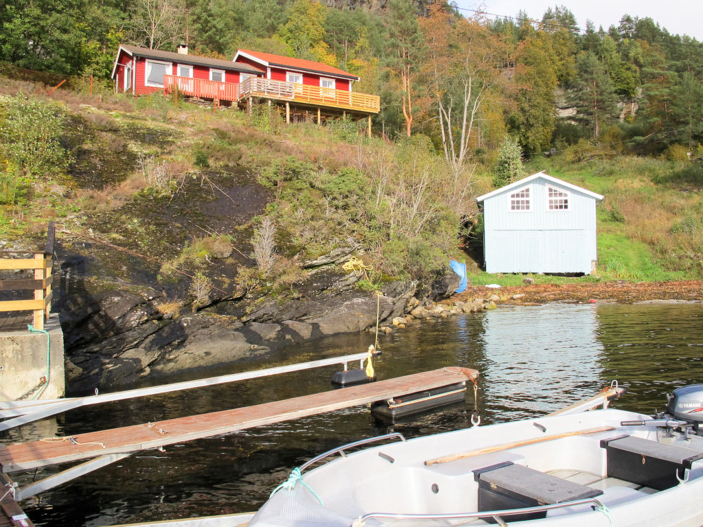 Das 2018 renovierte Ferienhaus steht in sonniger Aussichtslage ca. 30 m oberhalb vom Hardangerfjord am Rande vom Örtchen Herand (Kaufmann ca. 800 m). Odda liegt 54 km südlich, Bergen 107 km westlich. Anschluss an Rundwanderweg in Hausnähe. Baden am flach abfallenden Kies- und Felsstrand in ca. 50 m. Gute Angelmöglichkeiten im Fjord (ZERTIFIZIERTES ANGELHAUS). Lachsfluss Herandselva, ca. 200 m. Ruderboot im See Herandsvatnet (1,5 km, Angeln auf Forelle möglich, Nutzung nach Absprache vor Ort). Angelkarte für den Lachsfluss und den See Herandsvatnet inklusive. Bootssteg (gemeinsame Nutzung mit dem Besitzer) mit Fischverarbeitungstisch, ca. 50 m, über leicht abschüssigen Hang zu erreichen. 15-Fuß-Boot mit 10-PS-Motor und 14-Fuß-Boot mit 10-PS-Motor (je NOK 1500 pro Woche) jeweils auf Bestellung zu mieten. 2er Kajak auf Anfrage zu mieten (NOK 200 pro Tag). Am Haus separater Raum mit Fischverarbeitungstisch und Fließwasser. Das gemütlich, mit viel Holz eingerichtete Haus steht auf einem offenen Grundstück mit Wiese und Baumbestand. Große Terrasse mit Gartenmöbeln und transportablem Außengrill. Zufahrt über Schotterweg (ca. 300 m), nicht für Autos mit geringer Bodenfreiheit geeignet. Parken in 50 m, von dort führt ein Pfad zum Haus.