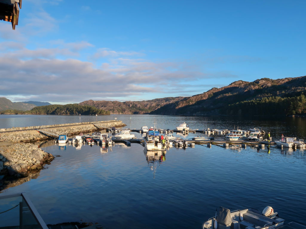Das 2016 gebaute Ferienhaus steht in herrlicher Lage im Dorf Huglo auf der gleichnamigen Insel (Fährverbindung) direkt am Langenuenfjord. Kaufmann in ca. 200 m. Die Nachbarinsel Stord liegt inmitten einem fischreichen Schärengebiet. Leirvik mit Hallenbad, Freilichtmuseum und Einkaufszentrum liegt 17 km, Haugesund 72 km südlich (jeweils + Fähre). Tagesausflüge in die sehenswerte, ehemalige Hansestadt Bergen (71 km + Fähren). Sehr gutes Angelgebiet (ZERTIFIZIERTES ANGELHAUS). 18-Fuß-Boot mit 40-PS-Motor mit Echolot und GPS (NOK 4000 pro Woche auf Bestellung zu mieten) am eigenen Bootssteg mit Fischveranbeitungstisch. Auf der Nachbarinsel Tsynes, deutschsprachiger Angelguide. Das geräumige Haus ist gemütlich und hell eingerichtet. Im Erdgeschoss großer Aufenthaltsraum mit viel Platz für Angelutensilien und gemütlicher Sitzecke. Von hier direkter Zugang zu 50 m² großer Terrasse mit Gartenmöbeln und transportablem Außengrill. 2 Balkons. Parken am Haus..