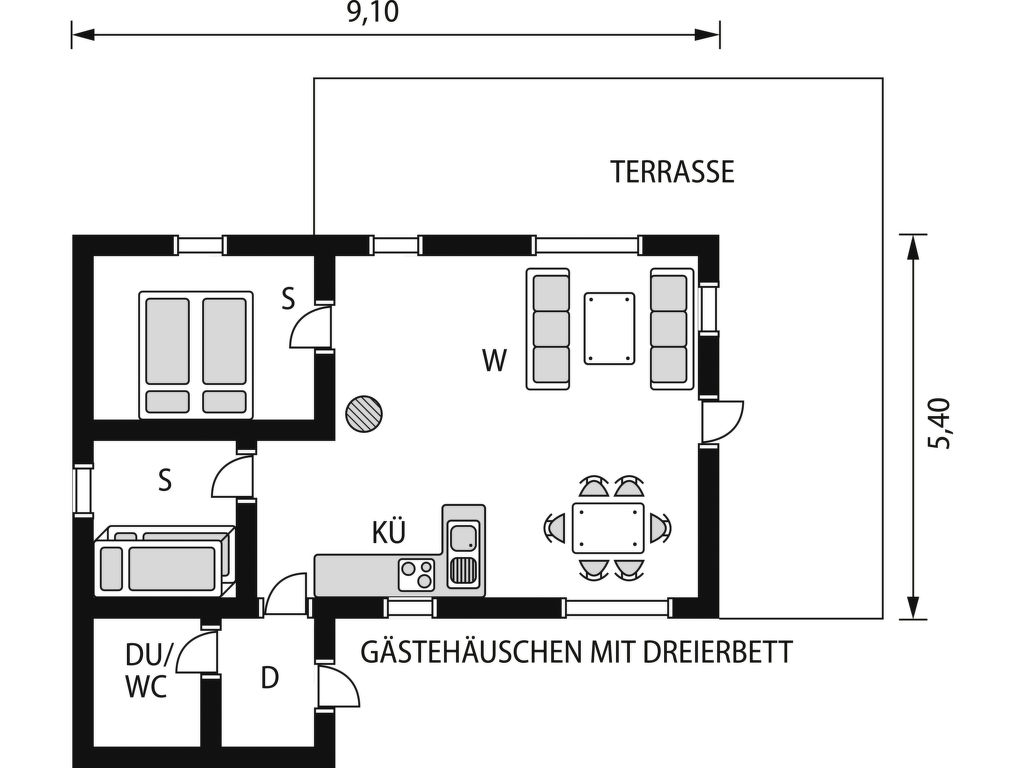 Wohnfläche 72 m². E-Herd 3 Platten, Backofen, Kühlschrank, Kaffeemaschine. Sat-TV. Dusche/WC. Elektroheizung, Kaminofen. Etagenbett 0,75 m breit. Ferienhäuser SOW 726 und SOW 742 jeweils ca. 25 m entfernt. Maximale Belegung: 4 Erwachsene und 2 Kinder.