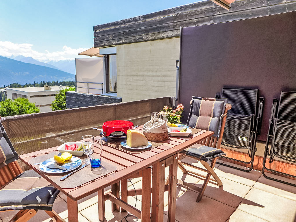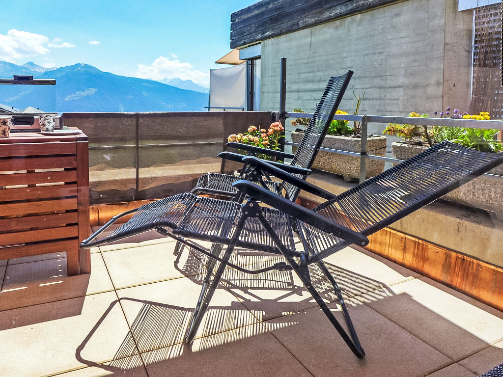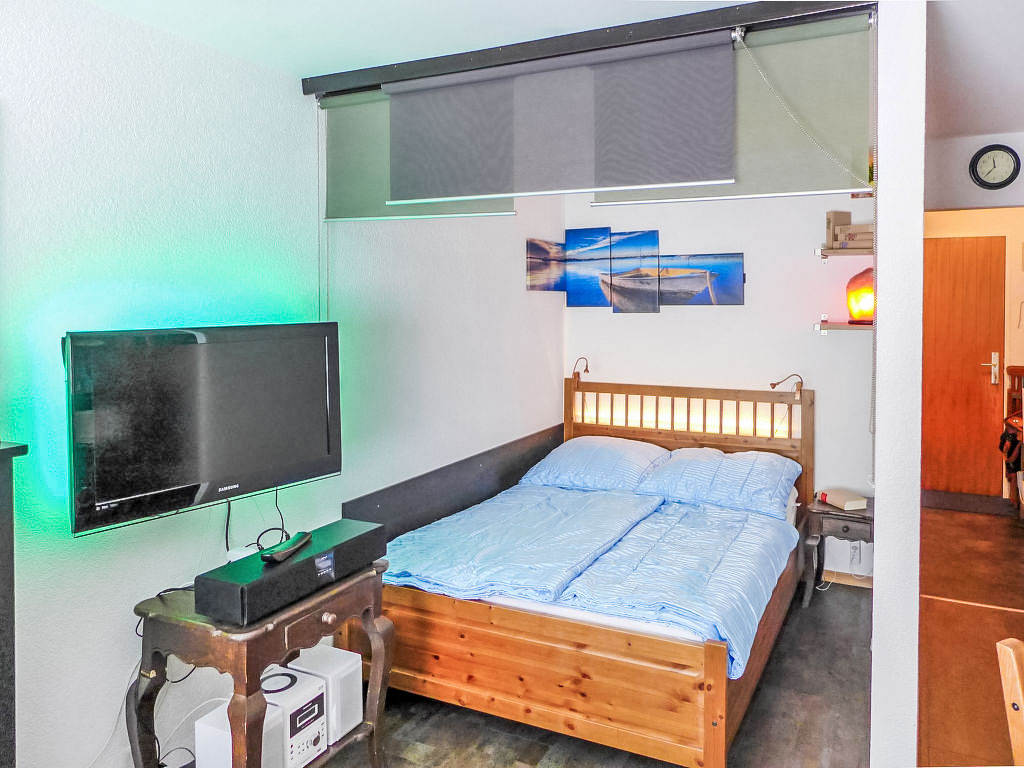 1-Zimmer-Studio 33 m2 im 2. Stock. Teilweise renoviert im Jahre 2014, schön eingerichtet: Wohn-/Schlafzimmer mit 1 franz. Bett (140 cm, Länge 200 cm), Kabel-TV (Flachbildschirm), CD und Stereoanlage. Küche (Backofen, Geschirrspüler, 4 Induktionskochplatten, Toaster, Wasserkocher, Mikrowelle, elektrische Kaffeemaschine, Kapseln für die Kaffeemaschine (Nespresso) extra, Racletteofen, Fondue Set (Chinoise, Käse)). Bad/WC. Grosse Terrasse, Südlage. Terrassenmöbel, Elektrogrill. Schöne Sicht auf die Berge. Zur Verfügung: Haartrockner. Internet (Wireless LAN, gratis). Garage Nr. 66, Höhe 200 cm, Breite 210 cm. Bitte beachten: Nichtraucher-Unterkunft. 1 Haustier/Hund erlaubt.