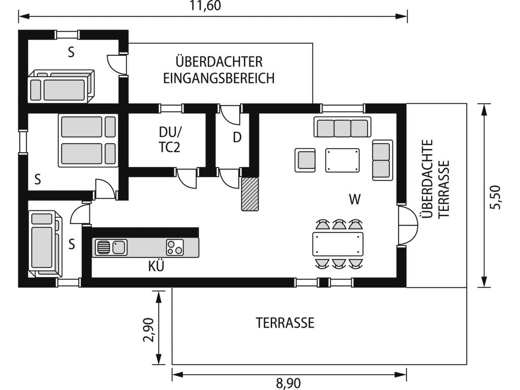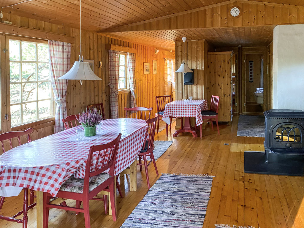 Wohnfläche 70 m². 4 Ceranfelder, Backofen, Kühlschrank, Gefrierschrank (ca. 50 l), Kaffeemaschine, Wasserkocher, Toaster, Waschmaschine. Sat-TV (deutsche Programme), DVD, CD, Internetzugang (WLAN, NOK 200 pro Woche, Bestellung). Dusche/Streutoilette. Elektroheizung, im Bad Fußbodenheizung, Holzofen. Ein Etagenbett 0,75 m breit.