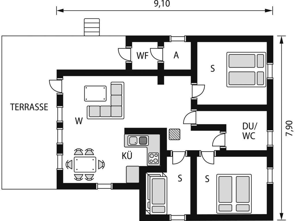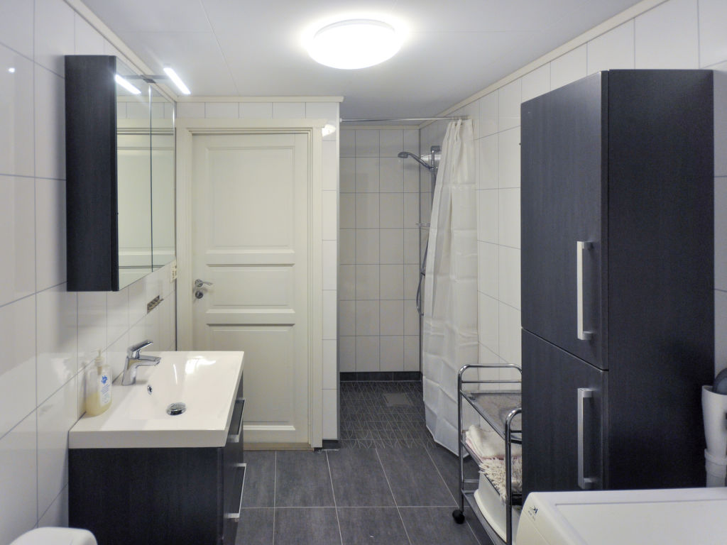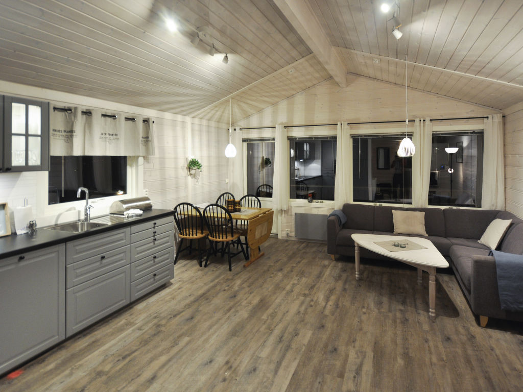 Wohnfläche 71 m². E-Herd 4 Ceranfelder, Backofen, Mikrowelle, Geschirrspüler, Kühlschrank, Gefriertruhe (ca. 150 l), Kaffeemaschine, Toaster, Waschmaschine. Sat-TV (deutsche Programme), CD, Internetzugang (WLAN, inklusive). Dusche/WC. Elektroheizung, im Bad Fußbodenheizung, Kaminofen (Holz inklusive). Etagenbett 0,75 x 1,90 m.