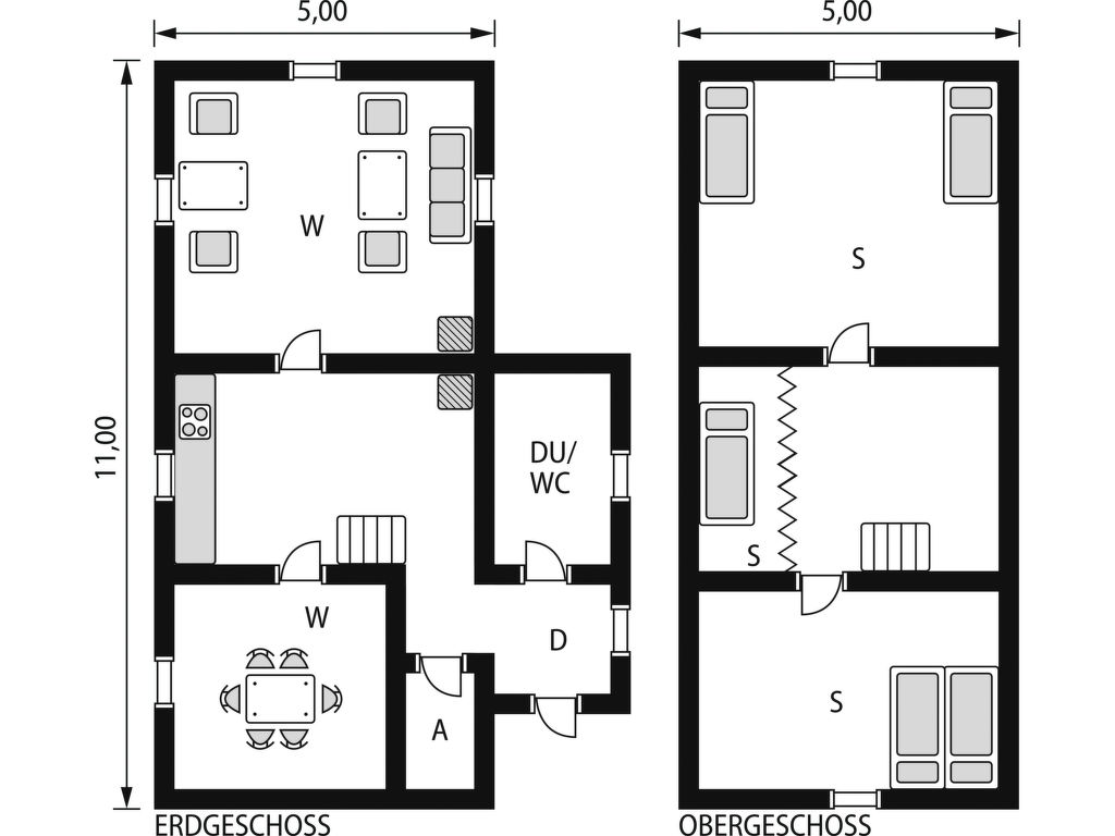 Wohnfläche 69 m². 4 Ceranfelder, Backofen, Mikrowelle, Geschirrspüler, Kühlschrank, Gefriertruhe (ca. 120 l), Kaffeemaschine, Wasserkocher, Toaster, Waschmaschine. Sat-TV (deutsche Programme), DVD, CD. Dusche/WC. Elektroheizung, Kaminofen, Holzofen, in der Diele Fußbodenheizung. Steile Treppe ins Obergeschoss (max. Stehhöhe 1,80 m).