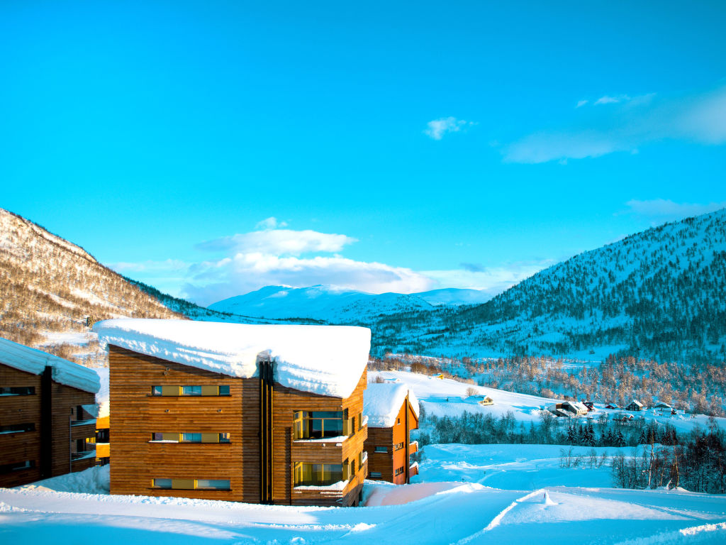 Das Wander-und Skiresort Myrkdalen liegt in 450 m Höhe am Fuße des über 1000 m hohen Vikafjells, inmitten einer abwechslungsreichen Berglandschaft. Vinje mit Kaufmann 7,5 km. Reitstall ca. 500 m. Hochseilgarten mit Zipline 16 km. Windtunnel in Voss 28 km. Ausflüge nach Gudvangen (33 km) mit Vikingerdorf und Kreuzfahrten auf dem Nærøyfjord, dem schmalsten Fjord Norwegens. Vik mit der Hopperstad Stabkirche 40 km. Flåm, Startpunkt der spektakulären Zugfahrt mit der Flåmbahn, 55 km. Bergen 127 km. Schöne Wandermöglichkeiten in die Berge des Vikafjells oder auf dem alten Postweg entlang des Nærøyfjords. Gute Angelmöglichkeiten in den zahlreichen Gebirgsseen der Umgebung. Myrkdalsvatn (3 km). Um das Hauptgebäude gruppieren sich im Abstand von 100-600 m mehrere 2-4-stöckige Appartementhäuser mit unseren Ferienwohnungen. Im Hauptgebäude mit Hotelbetrieb: Rezeption mit kostenlosem WLAN, 3 Restaurants, Bar, kleines Lebensmittelgeschäft und Kinderspielraum. Massagen und private Yogastunden gegen Gebühr (Preise nach Absprache vor Ort). Das Hotel organisiert auf Wunsch gegen Bezahlung u.a.: geführte Wander-, Mountainbike-, Angel- und Raftingtouren, sowie Transfer vom und zum Flughafen Bergen. Die Ferienwohnungen sind je nach Besitzer unterschiedlich, stets jedoch ansprechend und modern eingerichtet. Die Bettenaufteilung kann je nach Wohnung variieren (Buchungswünsche zur Betteneinteilung werden wenn möglich berücksichtigt). Jeweils TV. Einige Wohnungen mit Kamin und/oder Waschmaschine. Fußbodenheizung. Balkon oder Freisitz mit Mobiliar. Parken auf dem Grundstück. ● Winterbeschreibung: Das Skigebiet Myrkdalen beginnt direkt vor der Haustür: 2 Sessellifte, 7 Lifte, 22 Pisten (einfache bis mittlere Schwierigkeitsgrade), 5 km beleuchtete Loipen, Skischule und Skiverleih (20 % Ermäßigung für unsere Kunden).