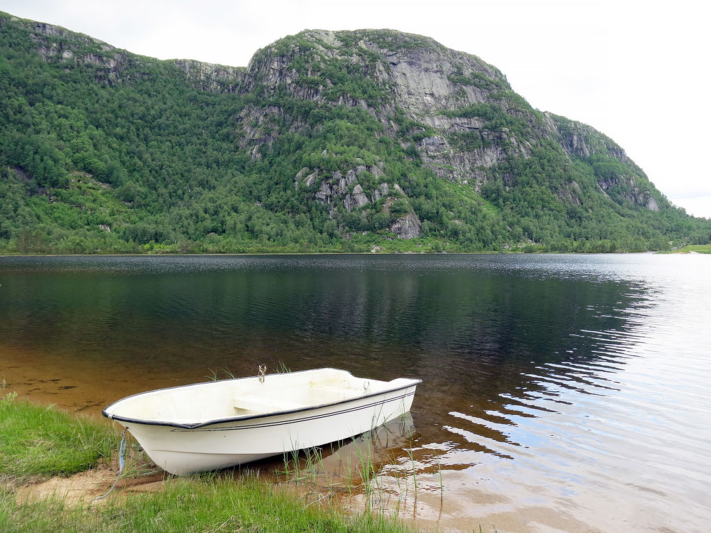 Das freundliche Ferienhaus steht im Weiler Breland mit Blick auf den ca. 150 m entfernten See Brelandsvatn. Kaufmann 14 km in Kyrkjebygd. Mandal liegt 93 km südlich, Kristiansand 99 km südöstlich. Herrliches Wandergebiet. Markierte Pfade ins Hochgebirge ab Ljosland (8 km). Bademöglichkeiten am Sandstrand (ca. 700 m). 13-Fuß-Ruderboot vorhanden. Gute Angelmöglichkeiten (Angelkarte vorhanden). Das wohnlich eingerichtete Haus steht auf einem 1800 m2 großen, teilweise umzäunten Wiesengrundstück. Teilüberdachte Terrasse mit Gartenmöbeln und transportabler Außengrill. Parken am Haus. ● Winterbeschreibung: 49 km lange Loipen in Ljosland (8 km).