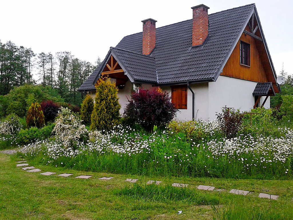 4-Zimmer-Haus 140 m2 auf 2 Stockwerken. Teilweise abgeschrägt, schön und gemütlich eingerichtet: offener Salon mit 1 Diwanbett, offenem Kamin und Sat-TV (Flachbildschirm), Radio. Ausgang zum Garten, zur Terrasse. Kochnische (4 Kochplatten, Backofen, Geschirrspüler, Mikrowelle). Dusche, sep. WC. Dachgeschoss: 1 abgeschrägtes Doppelzimmer. 2 abgeschrägte Zimmer, jedes Zimmer mit 1 Doppelbett (140 cm). Dusche/WC. E-Heizung, Holzheizung. Terrasse 25 m2. Terrassenmöbel, Liegestühle (2). Zur Verfügung: Sauna, Holz (extra). Internet (Wireless LAN). Kaminholz- 0,3 m3 pro Woche (kostenlos), zusätzliches Holz gegen Gebühr- 200 PLN/m3.