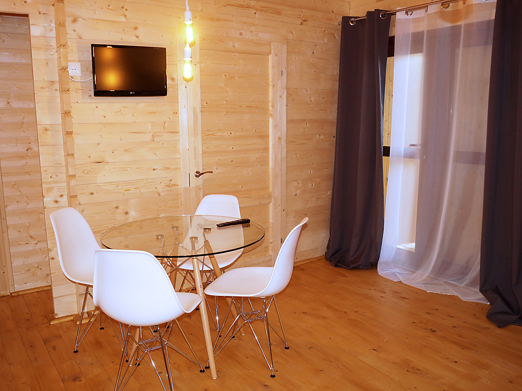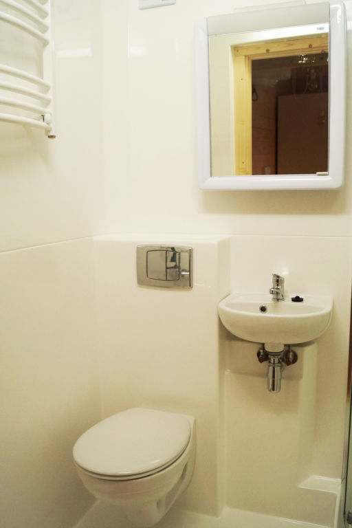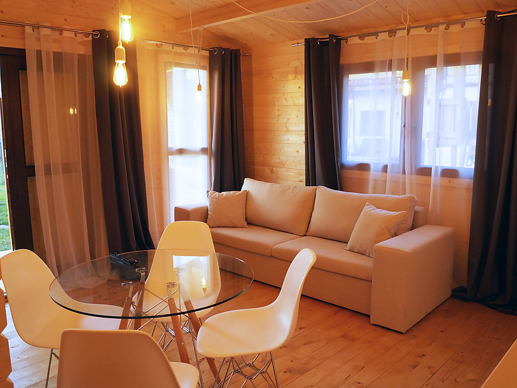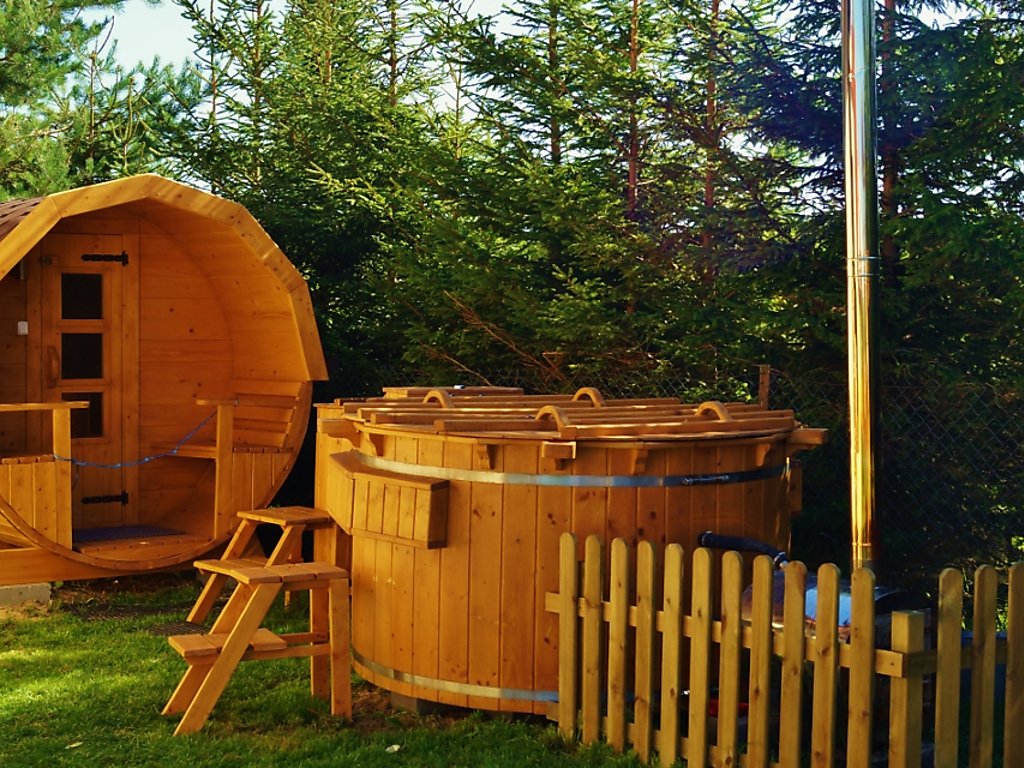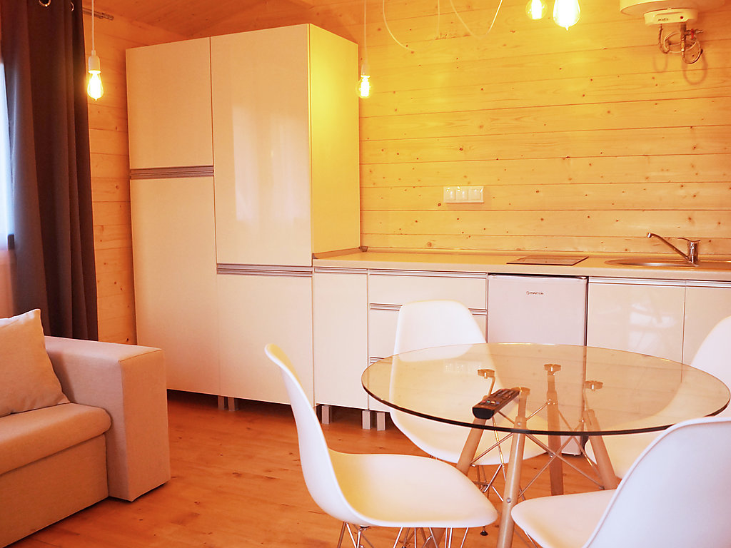 "Gąski - domek parterowy", 2-Zimmer-Bungalow 25 m2. Offenes Wohn-/Schlafzimmer mit 1 Doppeldiwanbett, Esstisch und TV. Ausgang zur Terrasse. 1 Zimmer mit 1 Doppelbett. Kochnische (2 Glaskeramikherd Platten, Tiefkühler). Dusche/WC. Boiler (40 Liter). Zur Verfügung: Internet (Wireless LAN). 1 Haustier/Hund erlaubt.