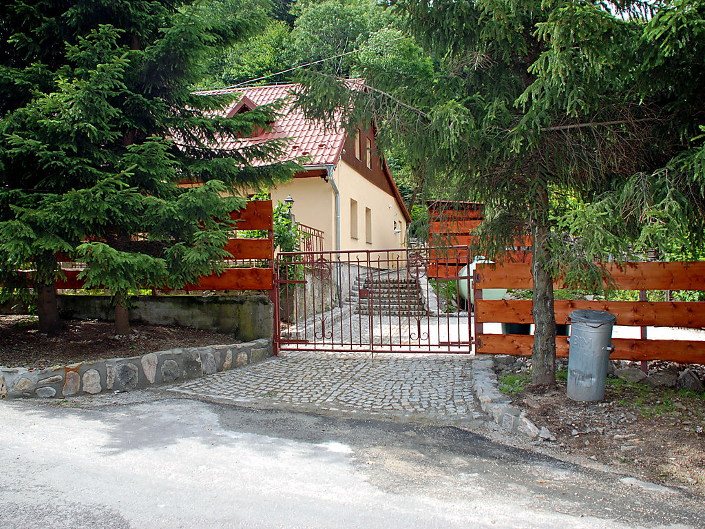 Kowary 9 km von Karpacz: Einfamilienhaus "Joanna", Baujahr 1930, renoviert im Jahre 2015, umgeben von Bäumen. Am Ortsrand, 9 km vom Zentrum von Karpacza, ruhige, sonnige Lage am Hang, direkt am Waldrand, 8.6 km vom Skigebiet, direkt am Fluss, im Grünen. Zur Alleinbenutzung: Grundstück 956 m2 (eingezäunt), Garten 750 m2. Gartenmöbel, Grill, Kinderspielplatz. Im Hause: Wireless LAN, Sauna (extra). Skiraum, Zentralheizung, Alarmanlage, Waschmaschine. Wohnungsreinigung 1 mal wöchentlich möglich (extra). Abholservice vom Flughafen (extra). Zufahrt bis zum Haus. Parkplatz beim Haus, öffentliche Parkplätze auf der Strasse. Einkaufsgeschäft 3 km, Lebensmittelgeschäft 1 km, Supermarkt 4 km, Restaurant, Bar 500 m, Bushaltestelle 300 m. Wanderwege ab Haus 100 m, Luftseilbahn 10 km, Skilift 9 km, Skischule 9 km, Langlaufloipe 300 m. Bekannte Skigebiete sind gut erreichbar: Karpacz 9 km, Mala Upa 8,6 km, Velka Upa 23 km. Bitte beachten: geeignet für Familien. Es kann auf Anfrage ein Transfer ab Flughafen zum Ferienobjekt organisiert werden. Die Kunden können im nahe liegenden Restaurant und im hoteleigenen Spa für Leistungen (Massagen, kosmetische Eingriffe, Schwimmbad) einen Rabatt erhalten. Es ist möglich SKIPASS im Zentrum von SKiMU zu einem Sonderpreis zu erwerben - Ski- und Unterhaltungsangebot für Familien mit Kindern in Mala Upa und in der Umgebung, weitere Details vor Ort. WICHTIG: Kaution von PLN 1'000.00.