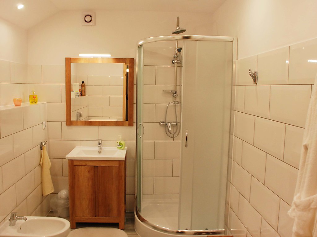 5-Zimmer-Haus 150 m2. Vollständig renoviert im Jahre 2015: Wohnzimmer 30 m2 mit offenem Kamin, Flachbildschirm, Radio, Stereoanlage und Heimkino. 1 Zimmer 25 m2 mit 1 Diwanbett und 1 x 2 Etagenbetten (80 cm), 1 franz. Bett (160 cm). 1 Zimmer 20 m2 mit 2 Betten (90 cm), 1 Diwanbett (120 cm). Küche (4 Kochplatten, Backofen, Geschirrspüler, Mikrowelle, Tiefkühler, Grill, elektrische Kaffeemaschine) mit Esstisch. Ausgang zum Garten. Dusche/Bidet/WC. Fussbodenheizung. Obergeschoss: 1 Zimmer 20 m2 mit 1 franz. Bett (160 cm). 1 Zimmer 20 m2 mit 1 Diwanbett (120 cm), 1 franz. Bett (160 cm). Dusche/WC. Schöne Sicht auf die Berge. Zur Verfügung: Waschmaschine, Sauna (extra), Bügeleisen, Kinderhochstuhl, Babybett bis 2 Jahre, Haartrockner, Holz (gratis). Internet (Wireless LAN, gratis). Parkplatz (2 Autos) beim Haus. Maximal 2 Haustiere/Hunde erlaubt. Trockenraum für Skischuhe vorhanden. Holz: 0.1 m3, gratis. Sauna kann zusätzlich gebucht werden, Zahlung (PLN 200/5 Stunden) vor Ort.