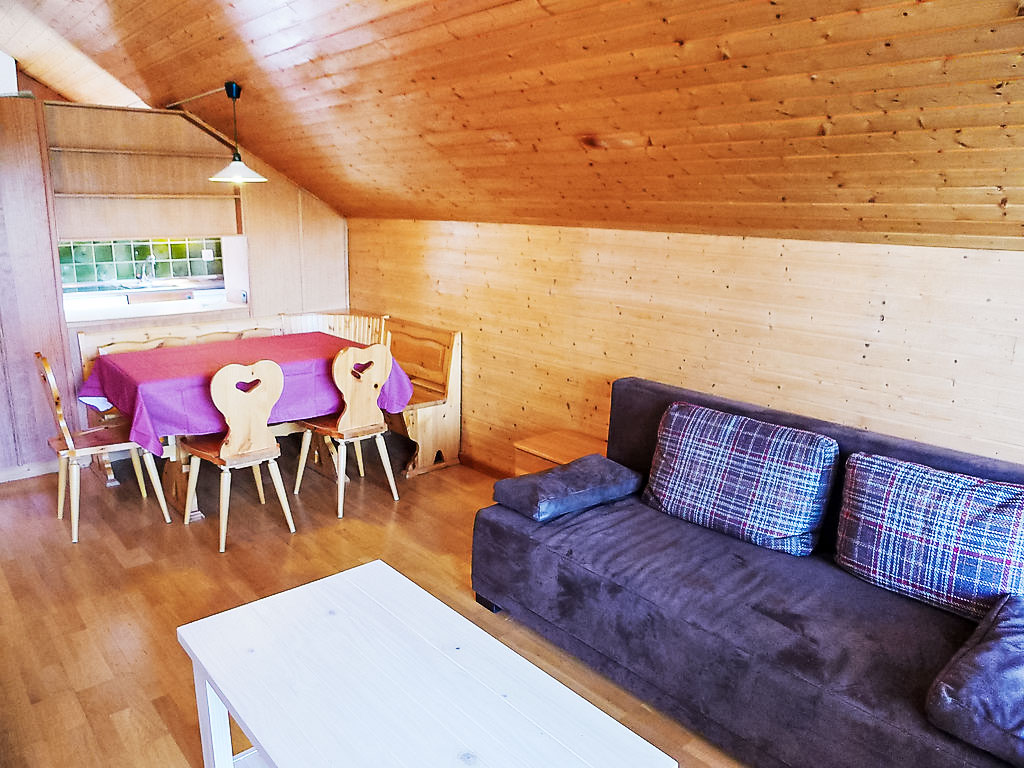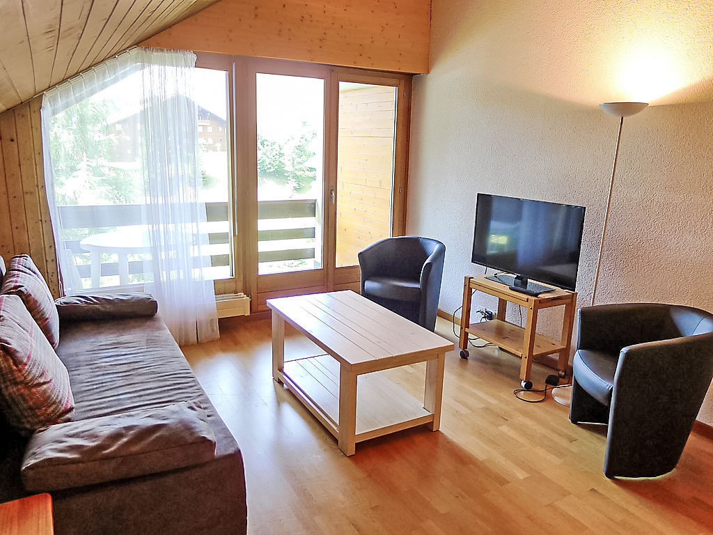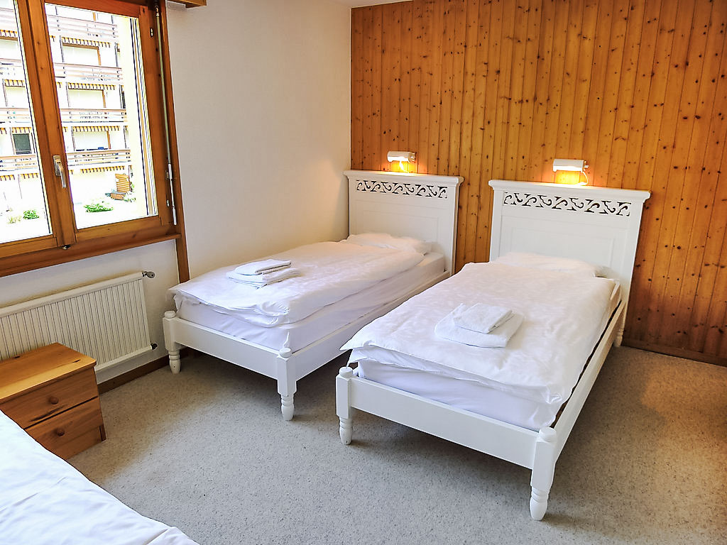 "Grenat 35", 3-Zimmer-Wohnung 70 m2 im 3. Stock, Südlage. Zweckmässig eingerichtet: Wohn-/Esszimmer mit Kabel-TV. Ausgang zum Balkon. 1 Zimmer mit 1 franz. Bett und Bad/Bidet/WC. 1 Zimmer mit 3 Betten. Kleine, offene Küche (3 Kochplatten, Backofen, Geschirrspüler). Dusche/WC. Balkon. Terrassenmöbel. Eingeschränkte Sicht auf die Berge und die Landschaft. Zur Verfügung: Internet (Wireless LAN, gratis). Garage Nr. 35. 1 Haustier/Hund erlaubt.