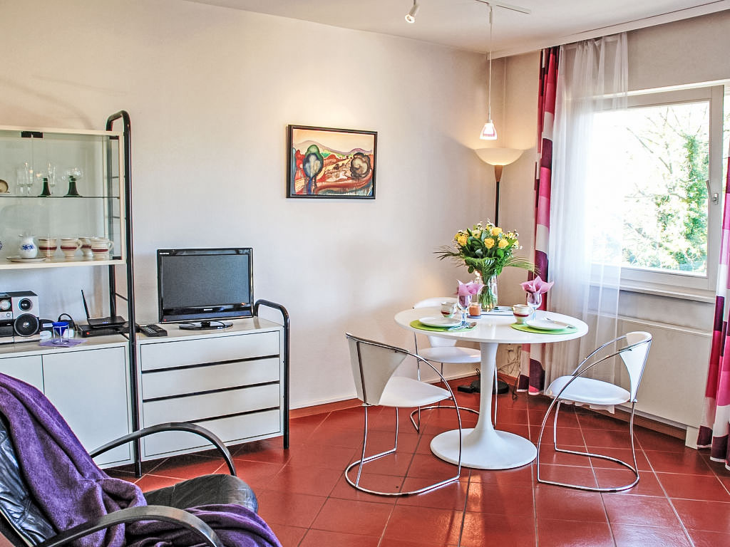2-Zimmer-Wohnung 48 m2 im 1. Stock, Südlage. Hell, schön und modern eingerichtet: Wohn-/Esszimmer mit TV (Flachbildschirm), Radio und CD. Ausgang zum Balkon. 1 Doppelzimmer mit 1 Doppelbett (2 x 90 cm, Länge 200 cm). Ausgang zum Balkon. Kleine Küche (Backofen, Geschirrspüler, 4 Glaskeramikherd Platten, Tiefkühler, elektrische Kaffeemaschine) mit Durchreiche. Dusche/WC. Kleiner Balkon. Balkonmöbel, Liegestühle (2). Sehr schöne Panoramasicht auf den See, die Berge und die Landschaft. Zur Verfügung: Kinderhochstuhl, Babybett bis 2 Jahre (extra). Internet (Wireless LAN, gratis). Parkplatz Nr. 2 (überdacht) beim Haus. Bitte beachten: Nichtraucher-Unterkunft. Maximal 1 kleines Haustier/Hund erlaubt.