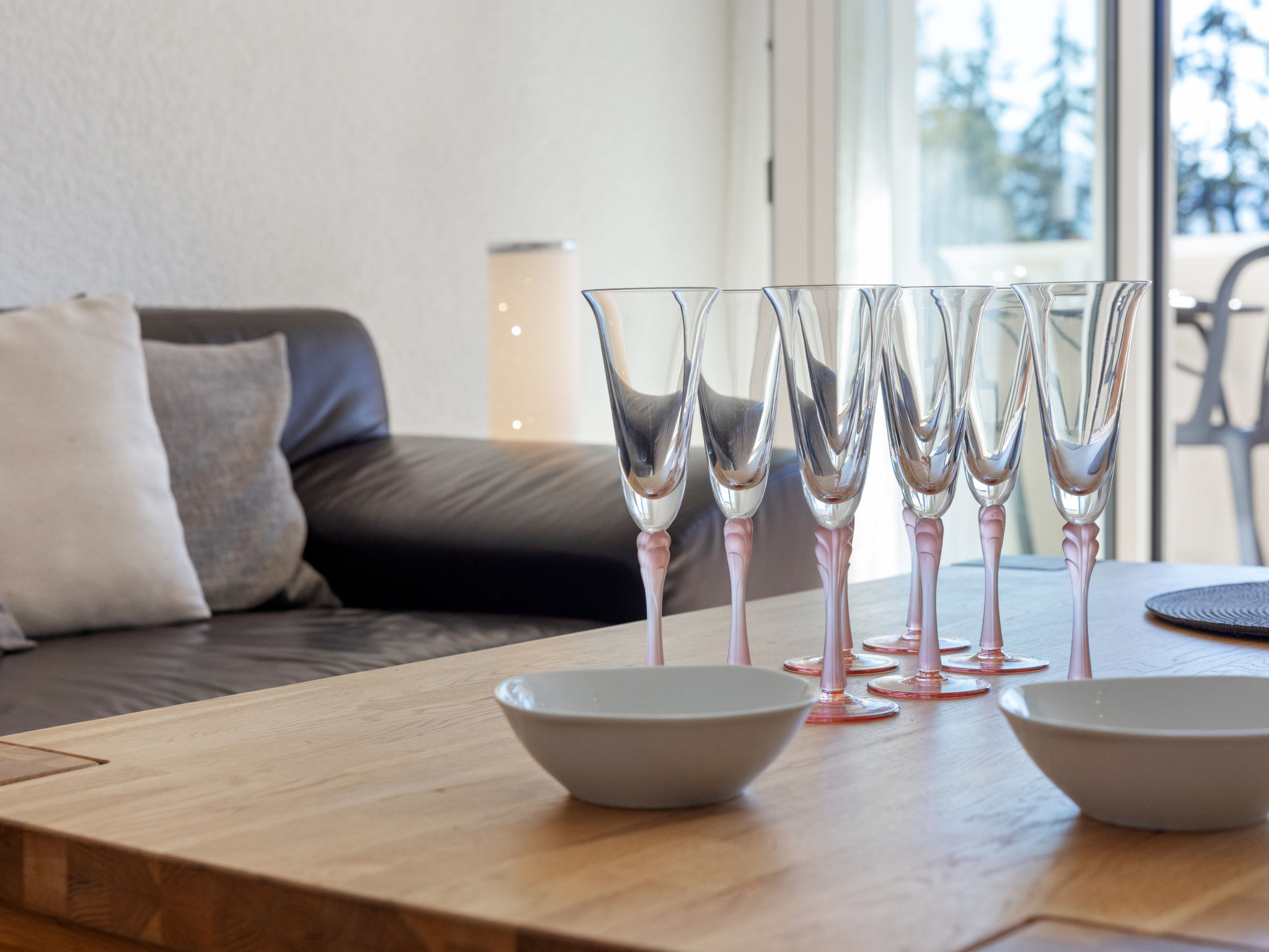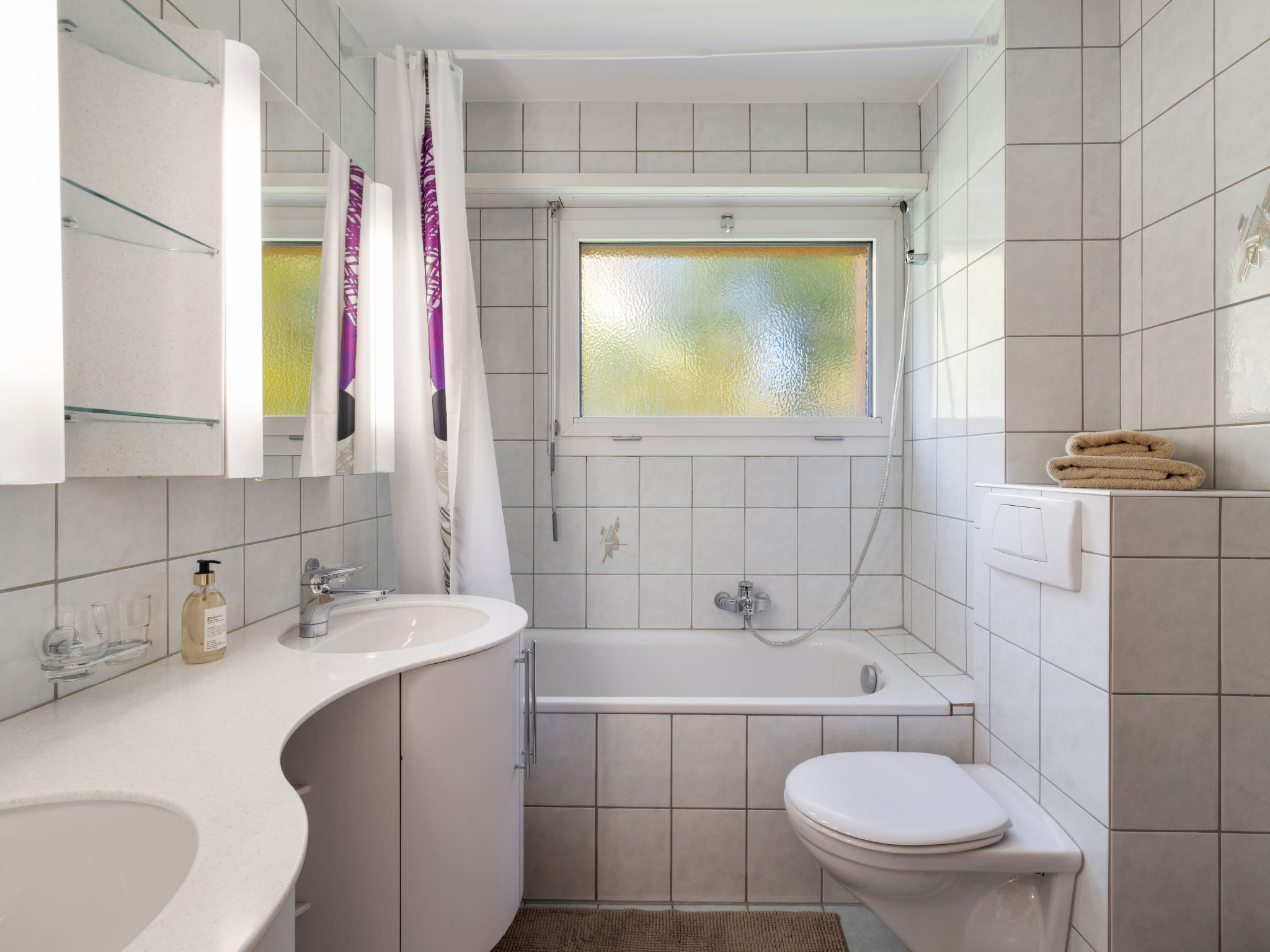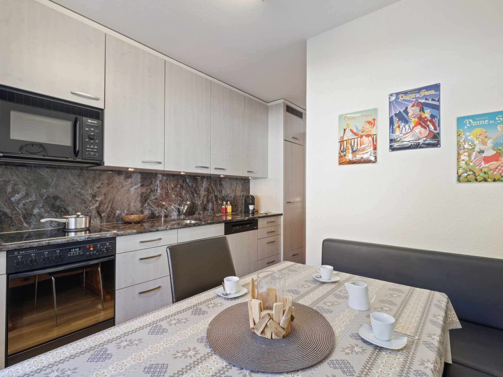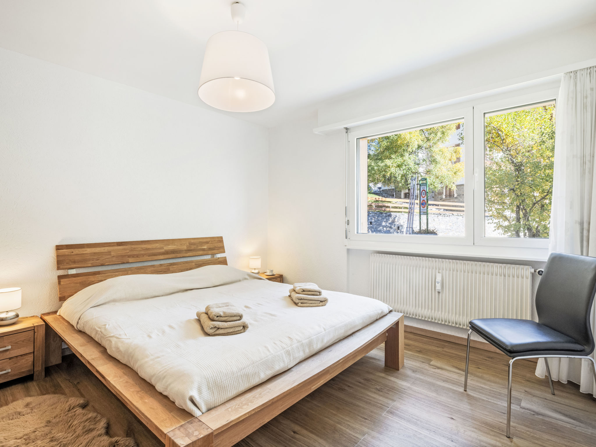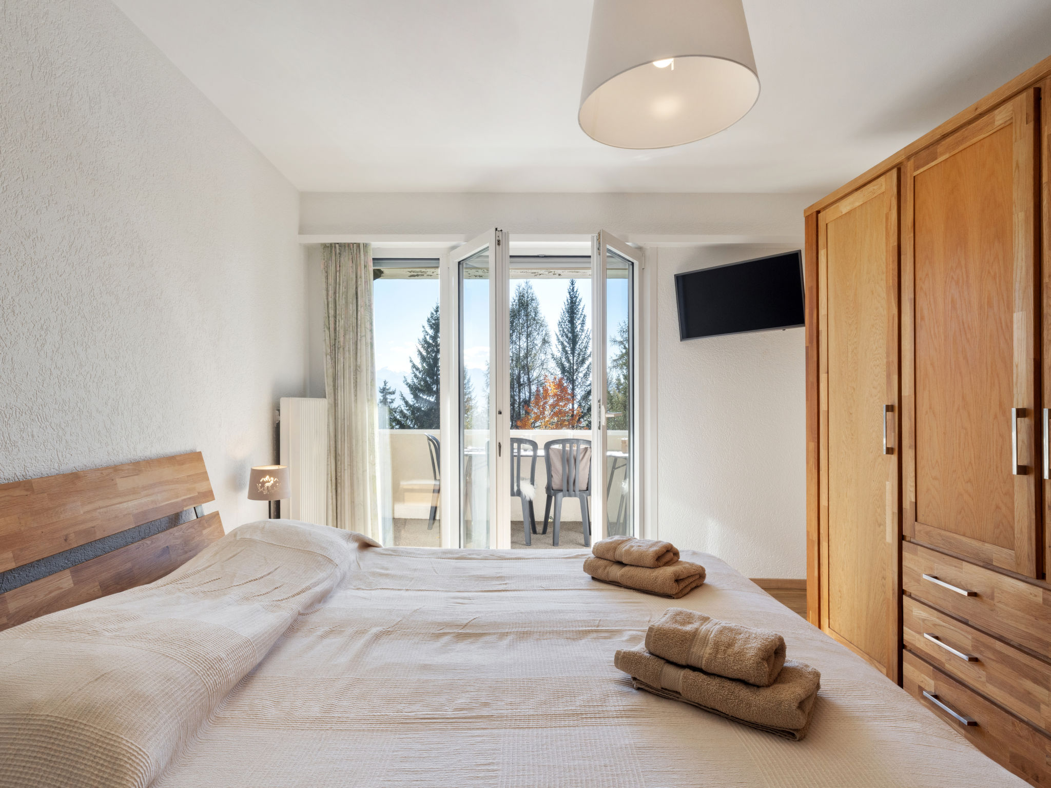4-Zimmer-Wohnung 100 m2, im erhöhten Erdgeschoss. Vollständig renoviert im Jahre 2016, schön eingerichtet: Wohn-/Esszimmer mit Kabel-TV, Flachbildschirm, Video, Radio und CD. 1 Zimmer mit 1 franz. Bett (180 cm, Länge 200 cm), Kabel-TV (Flachbildschirm). Ausgang zum Balkon, Richtung Süden. 1 Zimmer mit 1 franz. Bett (180 cm, Länge 200 cm). 1 Kinderzimmer mit 2 x 2 Etagenbetten (90 cm, Länge 190 cm). Küche (Backofen, Geschirrspüler, 4 Glaskeramikherd Platten, Toaster, Wasserkocher, Mikrowelle, elektrische Kaffeemaschine, Kapseln für die Kaffeemaschine (Nespresso) extra, Racletteofen, Fondue Set (Chinoise, Käse)) mit Esstisch. Bad/WC, Dusche/WC, Doppelwaschbecken. Grosser Balkon, Südlage. Balkonmöbel, Liegestühle (2). Sicht auf die Berge und die Landschaft. Zur Verfügung: Bügeleisen, Haartrockner. Internet (Wireless LAN, gratis). Garage Nr. 26, Höhe 200 cm, Breite 230 cm. Bitte beachten: Nichtraucher-Unterkunft.