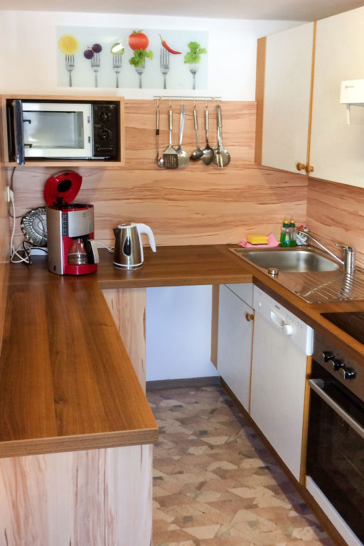 4-Zimmer-Wohnung, ca. 66 m². Keine abgeschlossene Wohnung, die Räume verteilen sich auf 3 Ebenen. Erdgeschoss: Wohnküche (4 Platten, Backofen, Mikrowelle, Geschirrspüler, Kühlschrank, Kaffeemaschine) mit Essplatz. Zwischenetage (abgeschlossene Wohneinheit): Kleiner Vorraum. Schlafzimmer mit Doppelbett und Bettcouch. Dusche. Sep.WC. 1. Etage: 2 Doppelzimmer, jeweils mit Dusche/WC. Flexibilität bei der Bettenaufteilung: Es stehen mehr Schlafmöglichkeiten zur Verfügung als die maximal zugelassene Personenzahl, diese darf dennoch nicht überschritten werden.
