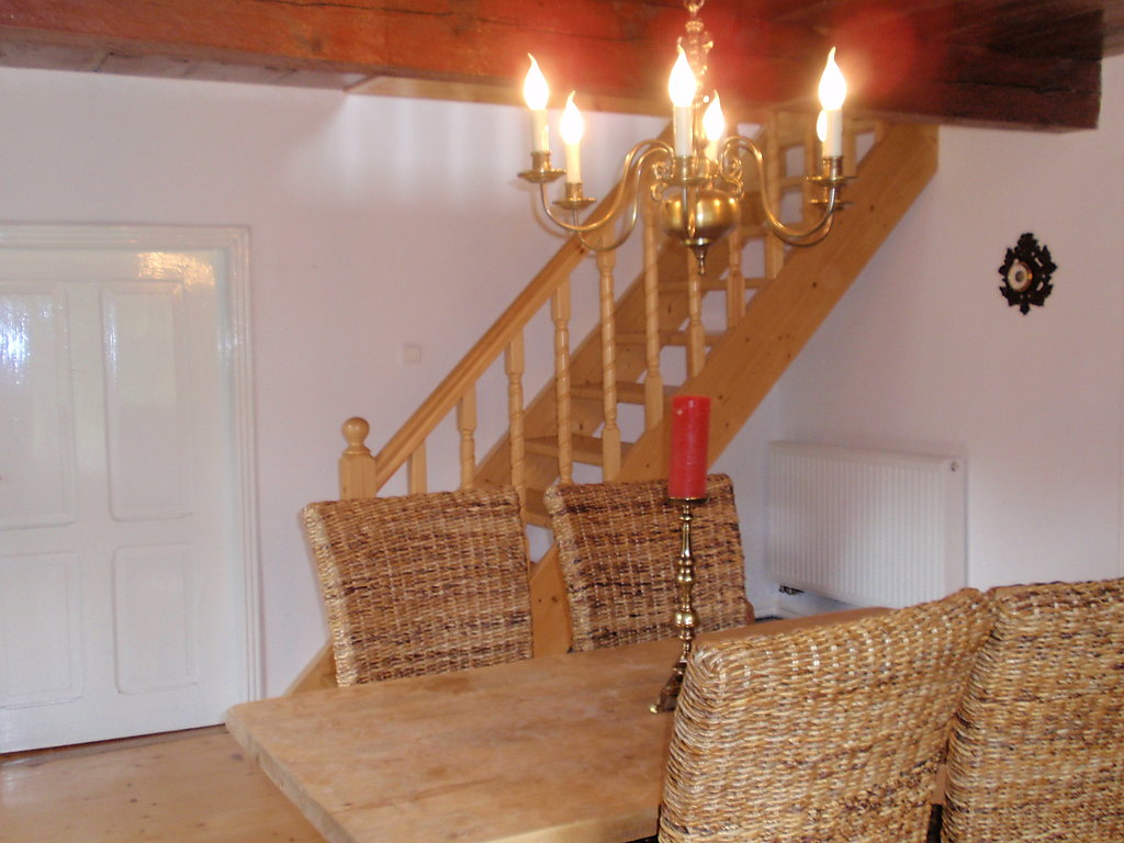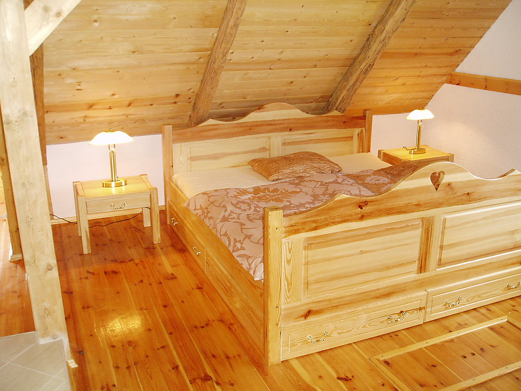 4-Zimmer-Haus 128 m2 auf 2 Stockwerken. Geräumig, schön und mit viel Holz eingerichtet: Wohnzimmer 16 m2 mit offenem Kamin, Sat-TV, Radio und DVD. 1 Zimmer 15 m2 mit 2 Betten und Schwedenofen. 1 Zimmer 12 m2 mit Bibliothek. Küche 20 m2 (Backofen, 4 Glaskeramikherd Platten, elektrische Kaffeemaschine) mit Esstisch. Dusche/WC. Dachgeschoss: offenes grosses Wohn-/Schlafzimmer 75 m2 mit 1 Doppelbett und mit Eckbadewanne. Dusche/WC. Holzheizung. Terrasse überdacht. Terrassenmöbel, Gartengrill, Liegestühle (4). Herrliche Sicht auf die Landschaft und den Wald. Zur Verfügung: Babybett bis 3 Jahre. Parkplatz beim Haus. Bitte beachten: Nichtraucher-Haus. Maximal 1 Haustier/Hund erlaubt.