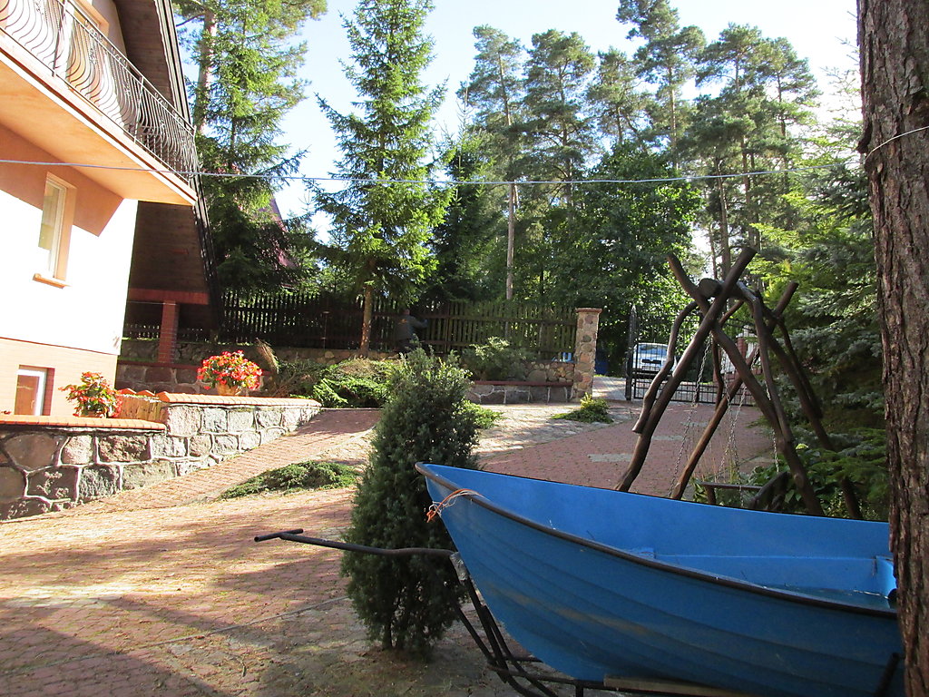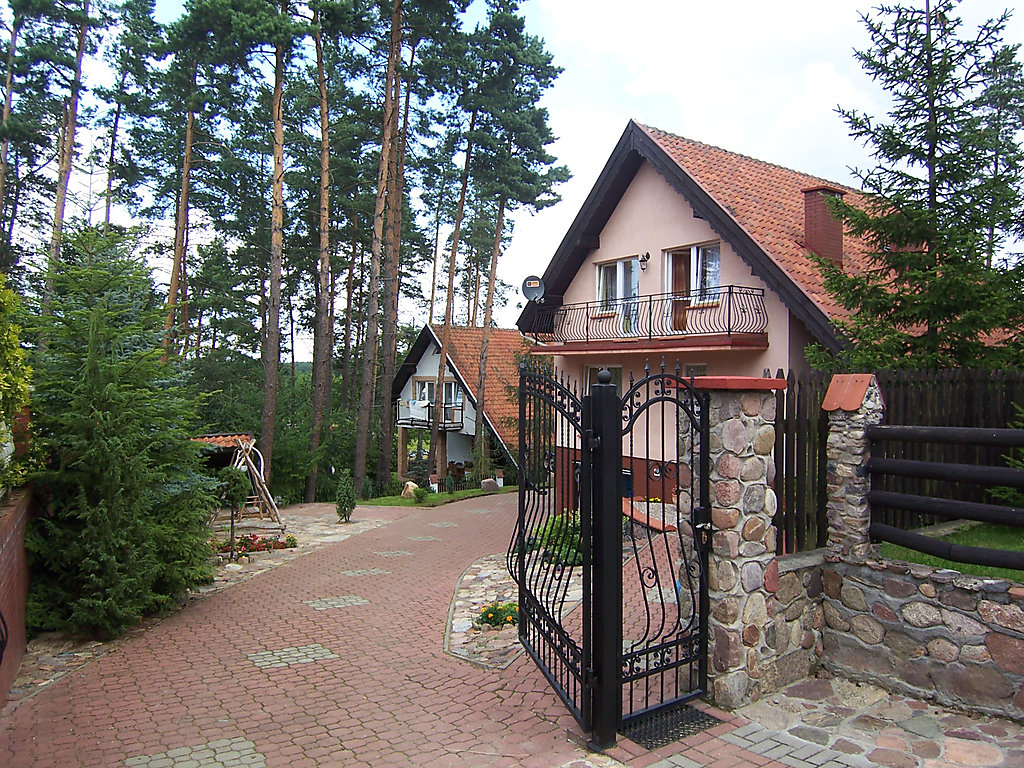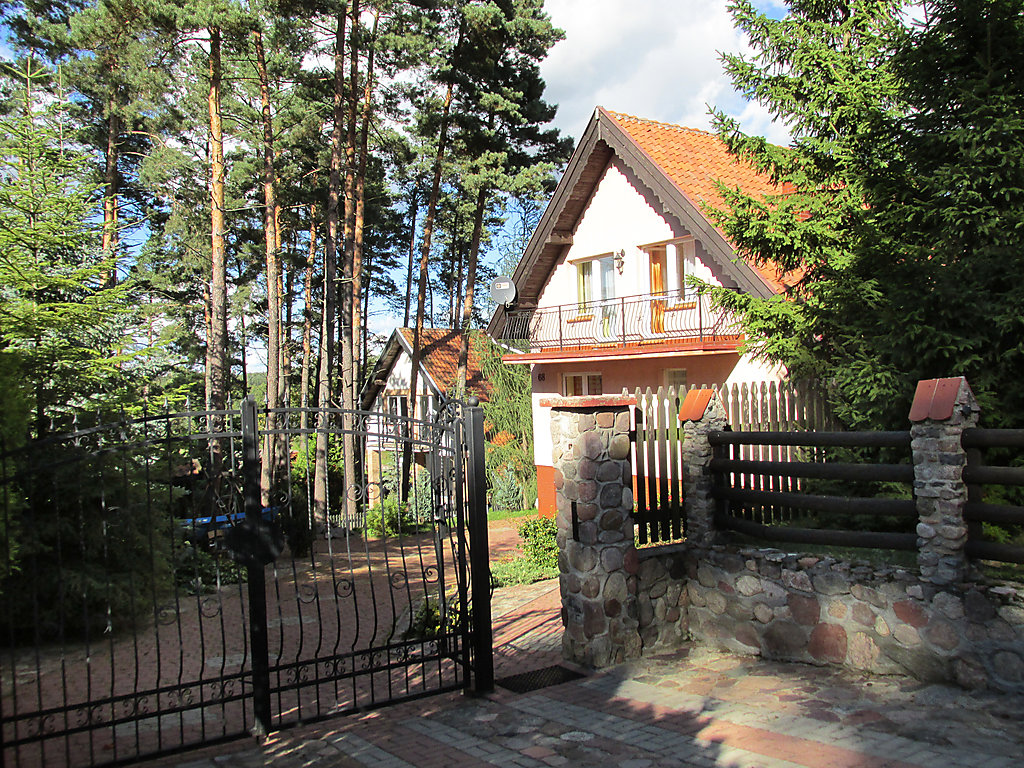 Mielno 13 km von Grunwald: Einfamilienhaus "Mielno 2". 50 m vom See, 100 m vom Strand, im Grünen. Zur Alleinbenutzung: Grundstück 900 m2 (eingezäunt), Garten, Aufstellpool (4 m Durchmesser, 01.07.-05.09.). Gartenmöbel, Grill, Kinderspielplatz (Sandkasten). Im Hause: Sauna, Waschmaschine, Heizung vor Ort zu zahlen, Fahrräder vorhanden (extra). Zur Verfügung: Boot. Parkplatz beim Haus, Einzelgarage. Einkaufsgeschäft 500 m, Bar, Café 50 m, Bushaltestelle 150 m. Radweg 300 m. See mit Sand- und Grasstrand 100 m. Spielplatz für Fussball und Volleyball 100 m. Petanque/Boccia 50m. Schöne Wälder. Jedes Jahr im Termin 10-15 Juli gibt es eine grosse Re-Inszenierung der Schlacht bei Tannenberg, 13km.