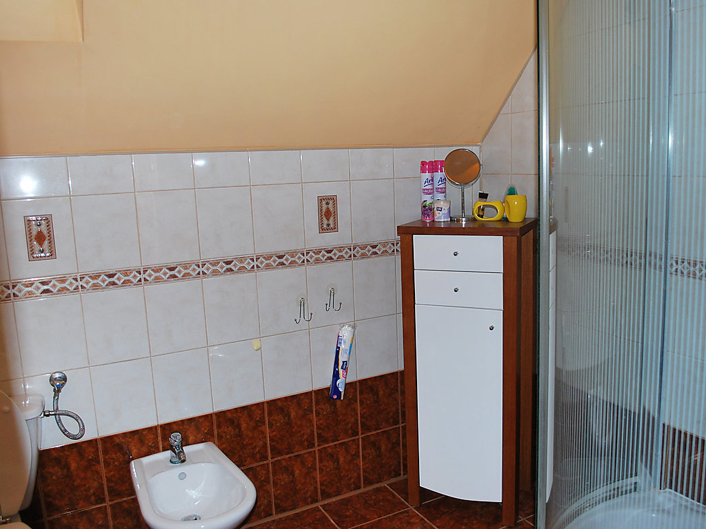 5-Zimmer-Haus 130 m2 auf 3 Stockwerken. Zweckmässig eingerichtet: Wohn-/Esszimmer mit offenem Kamin und Sat-TV (Flachbildschirm). Ausgang zur Terrasse. Kochnische (Backofen, Geschirrspüler, 4 Glaskeramikherd Platten, Mikrowelle, Tiefkühler, elektrische Kaffeemaschine). Obergeschoss: 2 Zimmer, jedes Zimmer mit 1 franz. Bett. 2 Zimmer, jedes Zimmer mit 2 Betten. Ausgang zum Balkon. Dusche/WC. E-Heizung (extra). Terrassenmöbel. Eingeschränkte Sicht auf den See. Zur Verfügung: Sauna, Kinderhochstuhl, Babybett bis 2 Jahre. Garage. Unteres Erdgeschoss: Sauna, 2x Dusche. Separates WC, Relaxraum. Von der Terrasse aus schöne Seesicht.