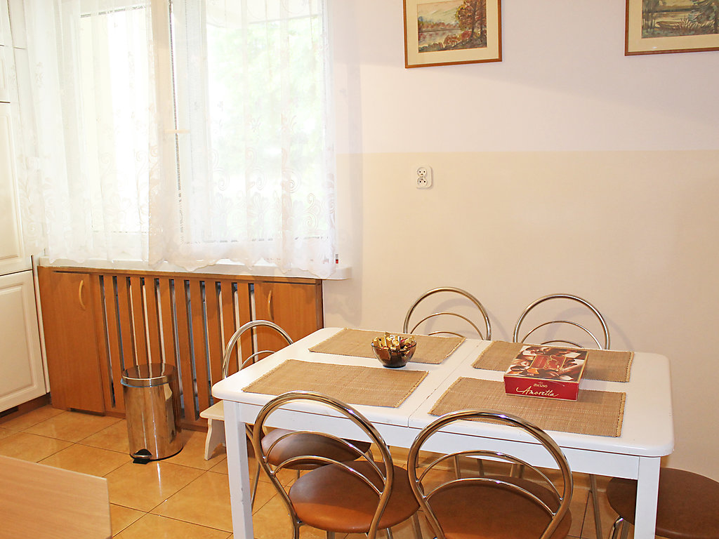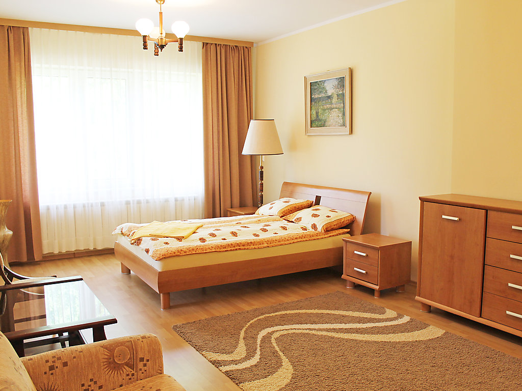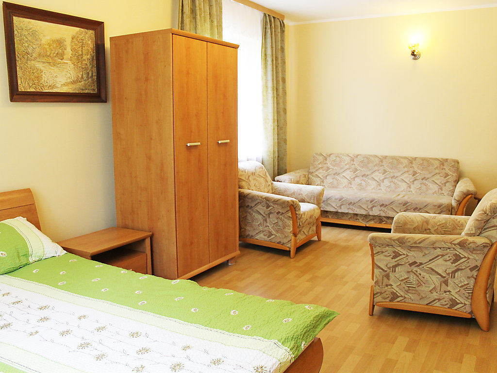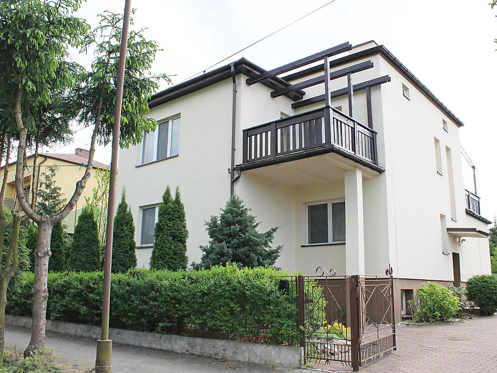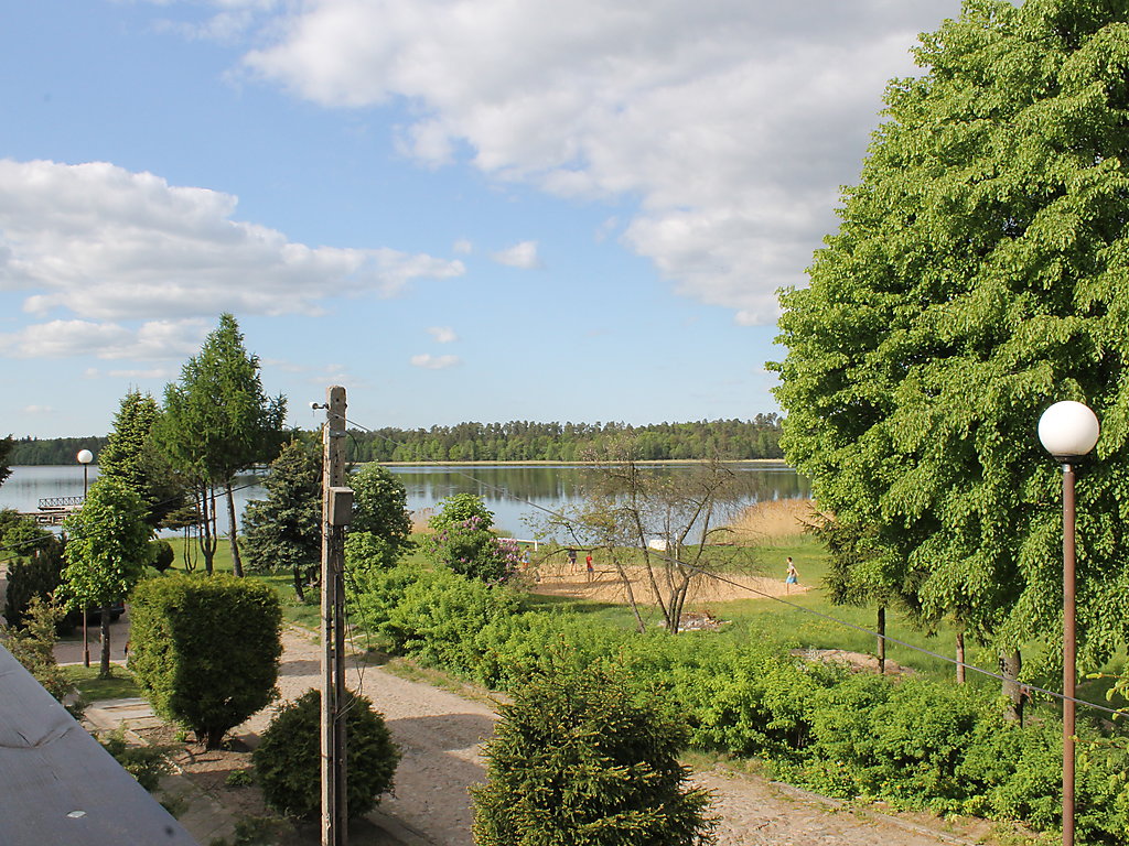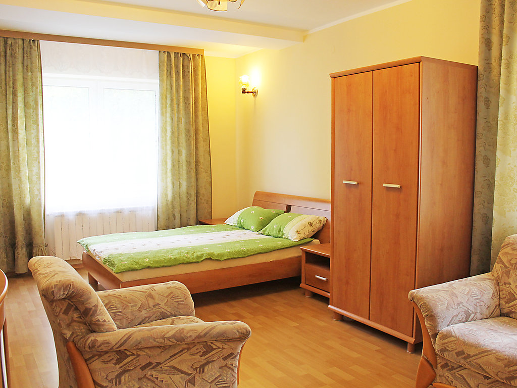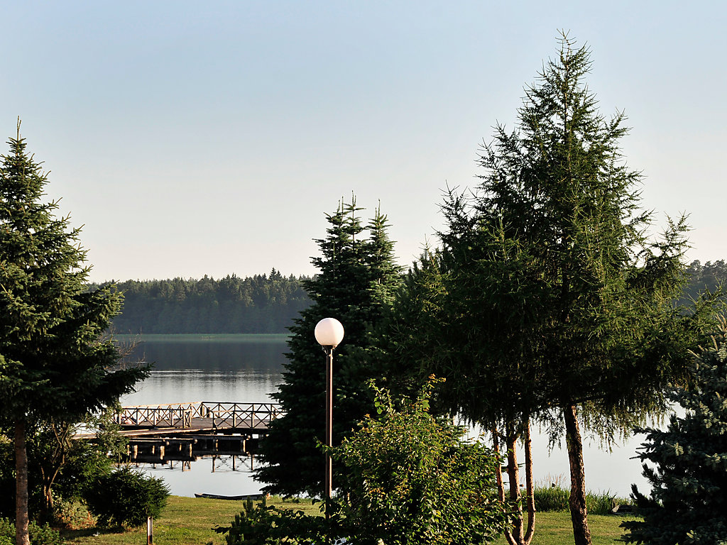 Einfamilienhaus "Augustów", umgeben von Bäumen. 1.5 km vom Zentrum, in einem Wohnquartier, 60 m vom See, an einer Strasse, im Grünen. Zur Alleinbenutzung: Grundstück 900 m2 (eingezäunt), Rasen und Pflanzen. Laube, Terrasse, Grill. Im Hause: Einstellraum für Fahrräder, Zentralheizung. Zur Verfügung: Fahrräder (2). Zufahrt bis zum Haus. Parkplatz beim Haus auf dem Grundstück. Lebensmittelgeschäft 300 m, Supermarkt 1.5 km, Restaurant 1 km, Bahnstation 3 km, Sandstrand 1.5 km, Hallenbad 2 km, Badebucht 100 m. Bitte beachten: Angeln (mit Bewilligung). Der Eigentümer hält sich ab und zu in einer Wohnung im unteren Erdgeschoss auf.