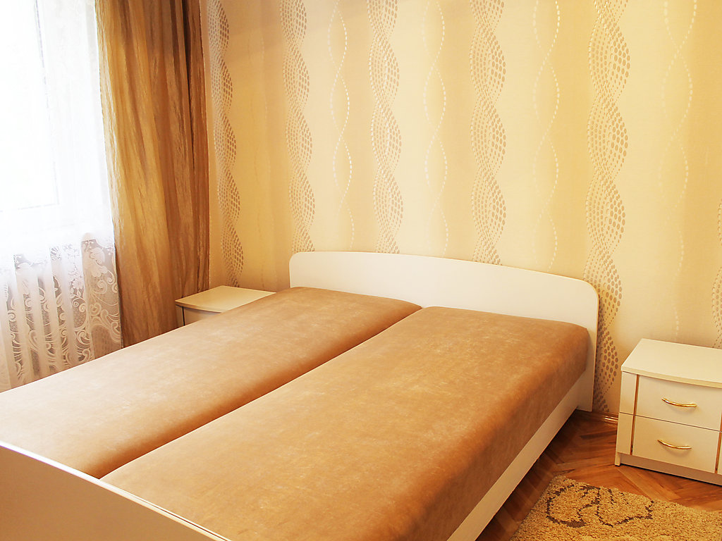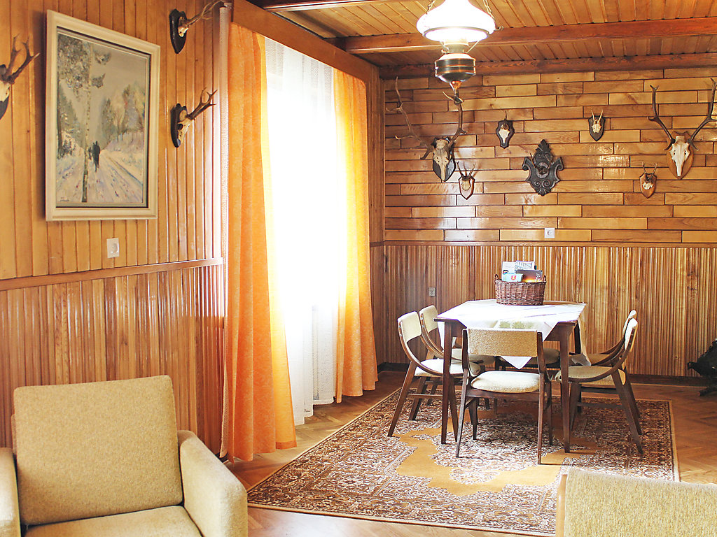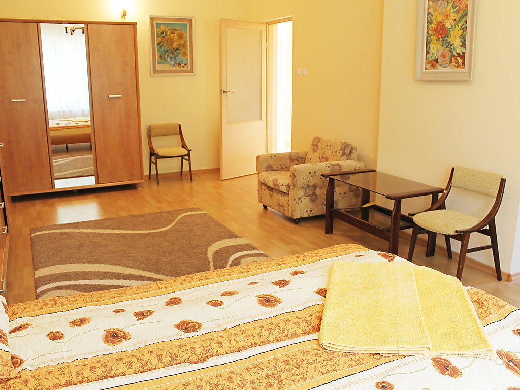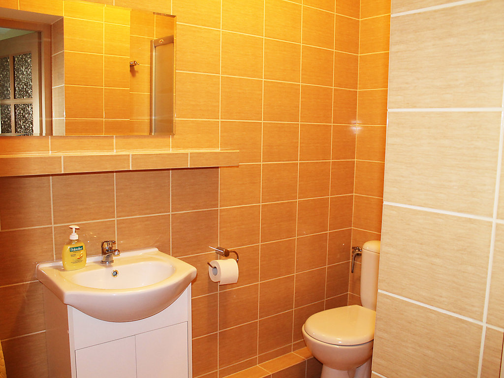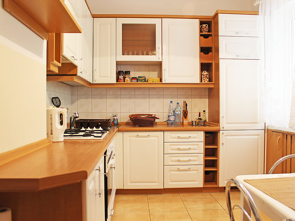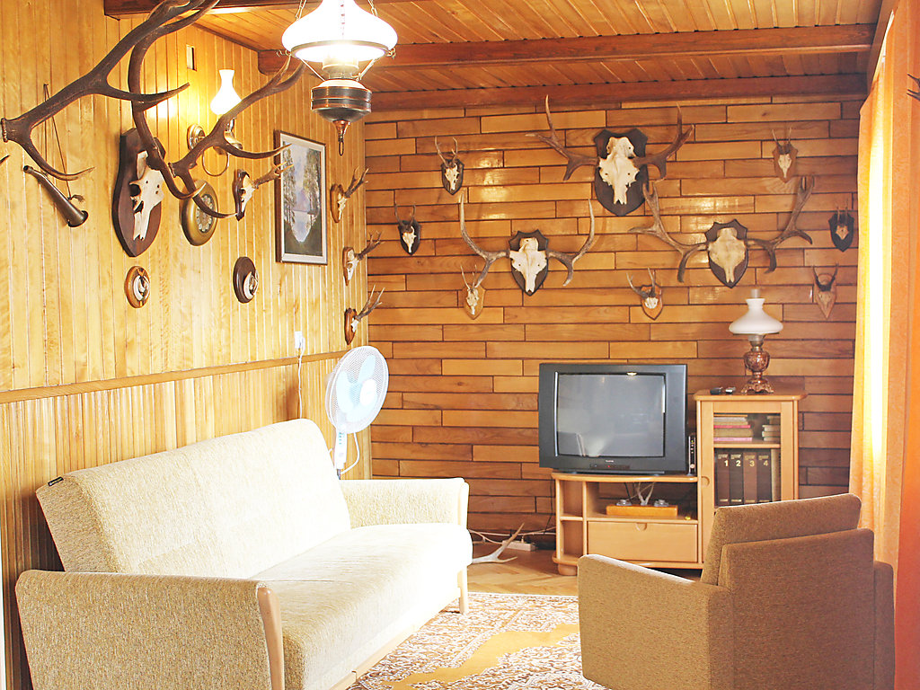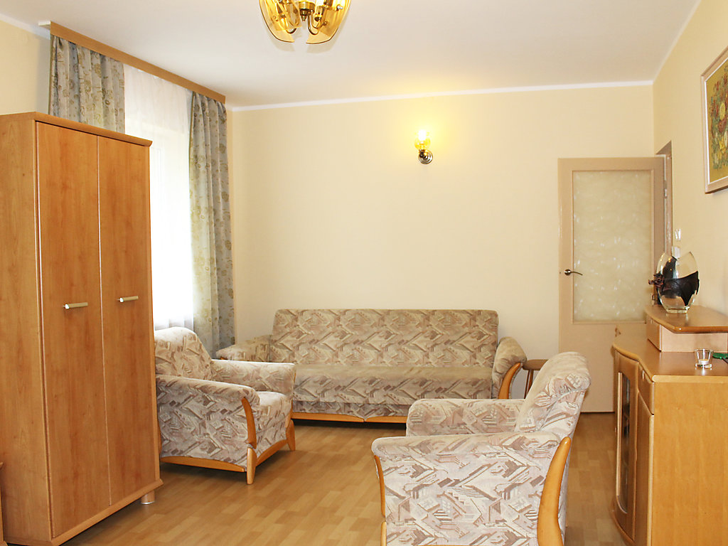 Einfamilienhaus "Augustów", umgeben von Bäumen. 1.5 km vom Zentrum, in einem Wohnquartier, 60 m vom See, an einer Strasse, im Grünen. Zur Alleinbenutzung: Grundstück 900 m2 (eingezäunt), Rasen und Pflanzen. Laube, Terrasse, Grill. Im Hause: Einstellraum für Fahrräder, Zentralheizung. Zur Verfügung: Fahrräder (2). Zufahrt bis zum Haus. Parkplatz beim Haus auf dem Grundstück. Lebensmittelgeschäft 300 m, Supermarkt 1.5 km, Restaurant 1 km, Bahnstation 3 km, Sandstrand 1.5 km, Hallenbad 2 km, Badebucht 100 m. Bitte beachten: Angeln (mit Bewilligung). Der Eigentümer hält sich ab und zu in einer Wohnung im unteren Erdgeschoss auf.