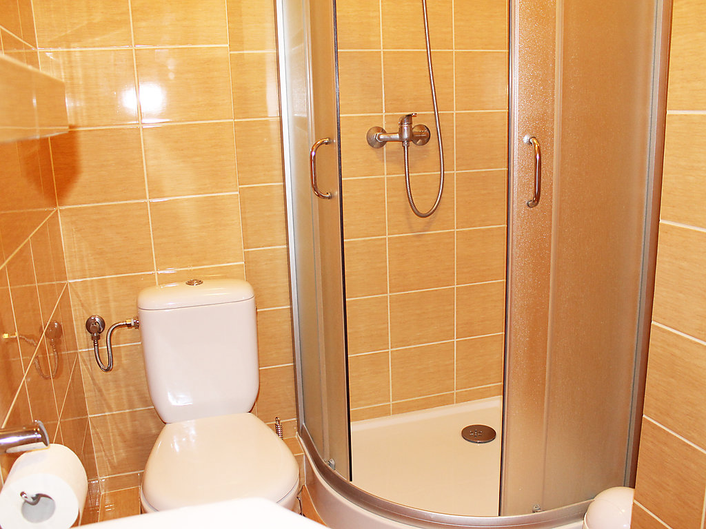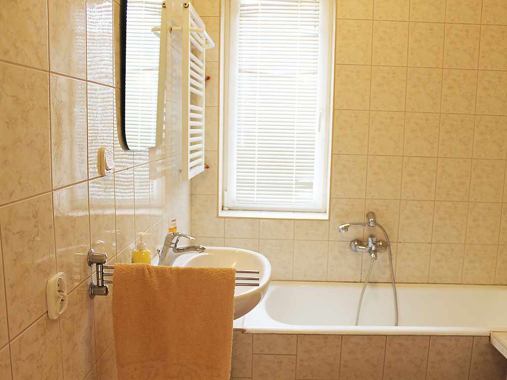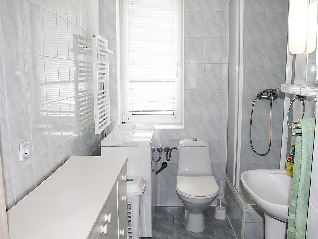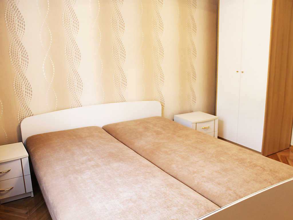 6-Zimmer-Haus 200 m2 auf 2 Stockwerken, im erhöhten Erdgeschoss. Komfortabel und schön eingerichtet: Wohnzimmer 28 m2 mit 2 Doppeldiwanbetten und Flachbildschirm. 1 Zimmer 12 m2 mit 1 franz. Bett (2 x 80 cm, Länge 195 cm). 1 Zimmer 22 m2 mit 1 franz. Bett (140 cm, Länge 200 cm), Dusche/WC und Stereoanlage. Küche (4 Kochplatten, Backofen, Geschirrspüler). Dusche/WC. Obergeschoss: Eingang. Ausgang zur Terrasse. 1 Zimmer 10 m2 mit 1 franz. Bett (140 cm, Länge 200 cm). 1 Zimmer 11 m2 mit 1 franz. Bett (140 cm, Länge 200 cm). 1 Zimmer 22 m2 mit 1 franz. Bett (140 cm, Länge 200 cm), Dusche/WC. Ausgang zum Balkon. Bad/WC. Balkon 10 m2, Terrasse 30 m2. Liegestühle (4). Schöne Sicht auf den See. Zur Verfügung: Waschmaschine, Fliegengitter. Internet (Wireless LAN, gratis). Parkplatz beim Haus. Maximal 2 Haustiere/Hunde erlaubt.