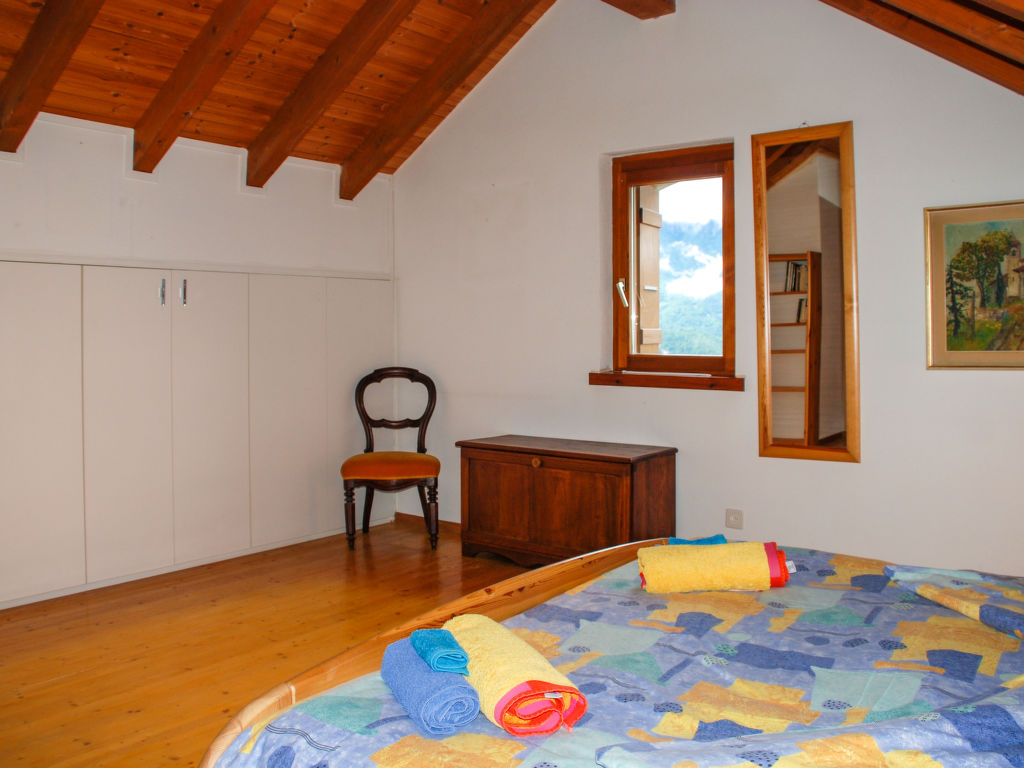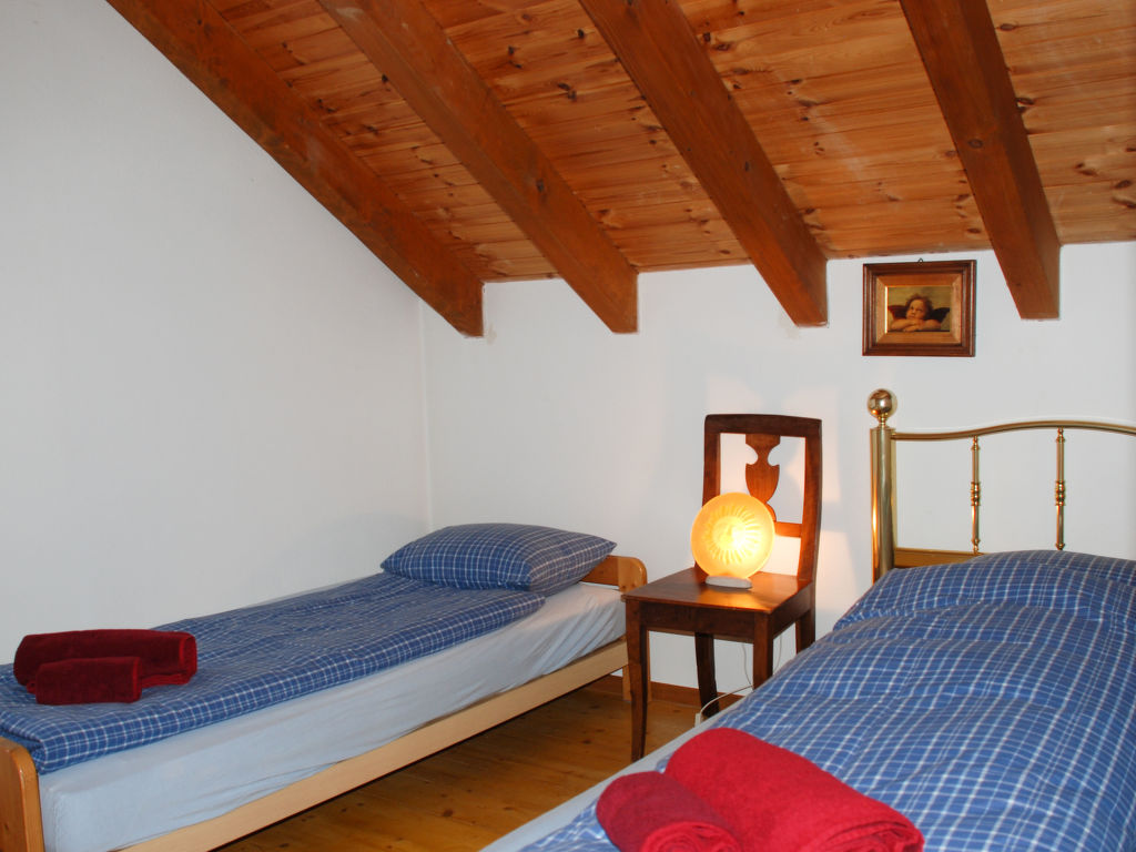 "App. Mattia OG", 3-Zimmer-Wohnung 90 m2 im 1. Stock. Geräumig und hell, komfortabel und gemütlich eingerichtet: offenes grosses Wohn-/Esszimmer mit Esstisch, Internationale TV-Sender und Flachbildschirm. Ausgang zum Balkon. Grosse, offene Küche (Backofen, Geschirrspüler, 4 Glaskeramikherd Platten, Tiefkühler, Fondue Set (Käse)). Obergeschoss: 1 grosses Doppelzimmer mit 1 Doppelbett (2 x 90 cm, Länge 200 cm). 1 Zimmer mit 2 Betten (90 cm, Länge 200 cm). Bad/WC. E-Heizung. Balkon, Südlage, Gartensitzplatz, grosser Garten. Balkonmöbel, Gartengrill, Liegestühle (4). Sehr schöne Sicht auf die Berge, das Tal und die Landschaft. Zur Verfügung: Kinderhochstuhl, Babybett bis 2 Jahre (extra), Haartrockner. Internet (Wireless LAN, gratis). Bitte beachten: Nichtraucher-Unterkunft. Feuerlöscher.