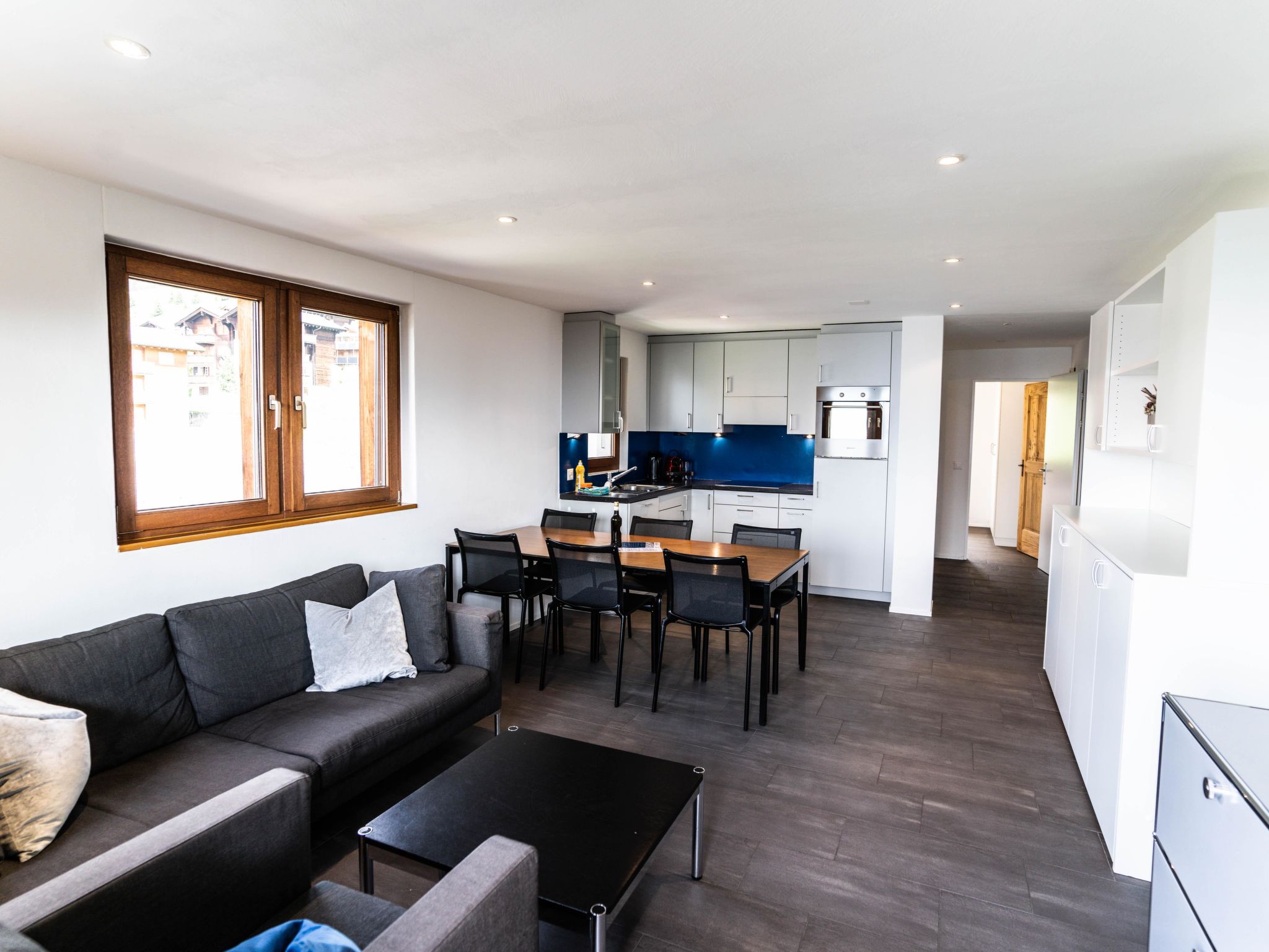 Eine 3 1/2 Zimmerwohnung im 3. OG. bis 5 Personen. Die Wohnung verfügt über 2 Schlafzimmer mit Doppelbetten, ein Zimmer davon mit separater Dusch/WC. Für eine 5. Person steht im Wohnraum ein komfortables Klappbett zur Verfügung. Badezimmer/WC, offenes Wohn- Esszimmer mit moderner Küche. Süd-West Balkon mit Tisch und Stühlen. Die Küche ist mit einem Geschirrspüler und einer Nespresso-Maschine ausgestattet. Gratis W-Lan und Satelliten TV. Waschküche im Keller. Der Ski Raum ist mit Schuhtrocknern ausgestattet. Die Nespresso-Kapseln und Wäschekarten können in unserem Geschäft im Parterre bezogen werden. Wir offerieren Ihnen in unseren Sportgeschäften Intersport bürcherAlpin 10 % auf die Mietartikel. Neu: Hauseigene Skischule bürcherAlpin mit ausgebildeten Skilehrern.