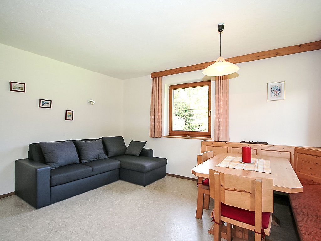 3-Zimmer-Wohnung 55 m2 im 1. Stock. Gemütlich eingerichtet: Eingang. 2 Doppelzimmer. Grosse Wohnküche (4 Kochplatten, Backofen, Geschirrspüler, Wasserkocher, Mikrowelle, elektrische Kaffeemaschine) mit 1 Doppeldiwanbett, Essecke und Sat-TV (Flachbildschirm), Radio und CD. Ausgang zum Balkon. Dusche/WC. Grosser Balkon. Schöne Sicht auf die Berge und die Landschaft. Zur Verfügung: Kinderhochstuhl, Babybett bis 3 Jahre. Internet (Wireless LAN, gratis). Der grosse 2-seitige Balkon Richtung Osten und Süden steht zu Mitbenützung mit der Wohnung AT6272.100.1 zur Verfügung.