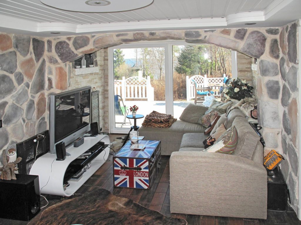 Wohnfläche 75 m². 4 Ceranfelder, Backofen, Holzherd, Mikrowelle, Geschirrspüler, amerikanischer Kühlschrank, Gefrierschrank (ca. 100 l), Kaffeemaschine, Wasserkocher, Toaster, Waschmaschine. TV, DVD, CD, Internetzugang (WLAN, Bezahlung). Dusche/WC. Wärmepumpenheizung (Klimaanlage mit Kühl-/Heizfunktion), in Bad, Küche und Wohnzimmer Fußbodenheizung. Kamin. Franz. Bett 1,40 m breit.