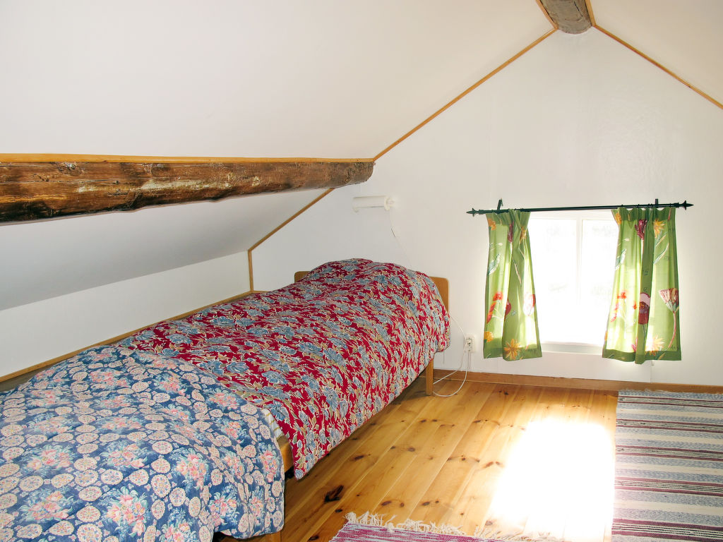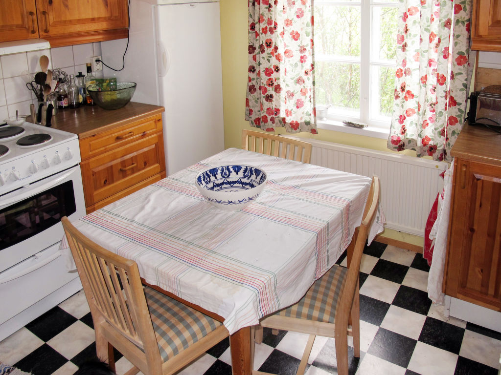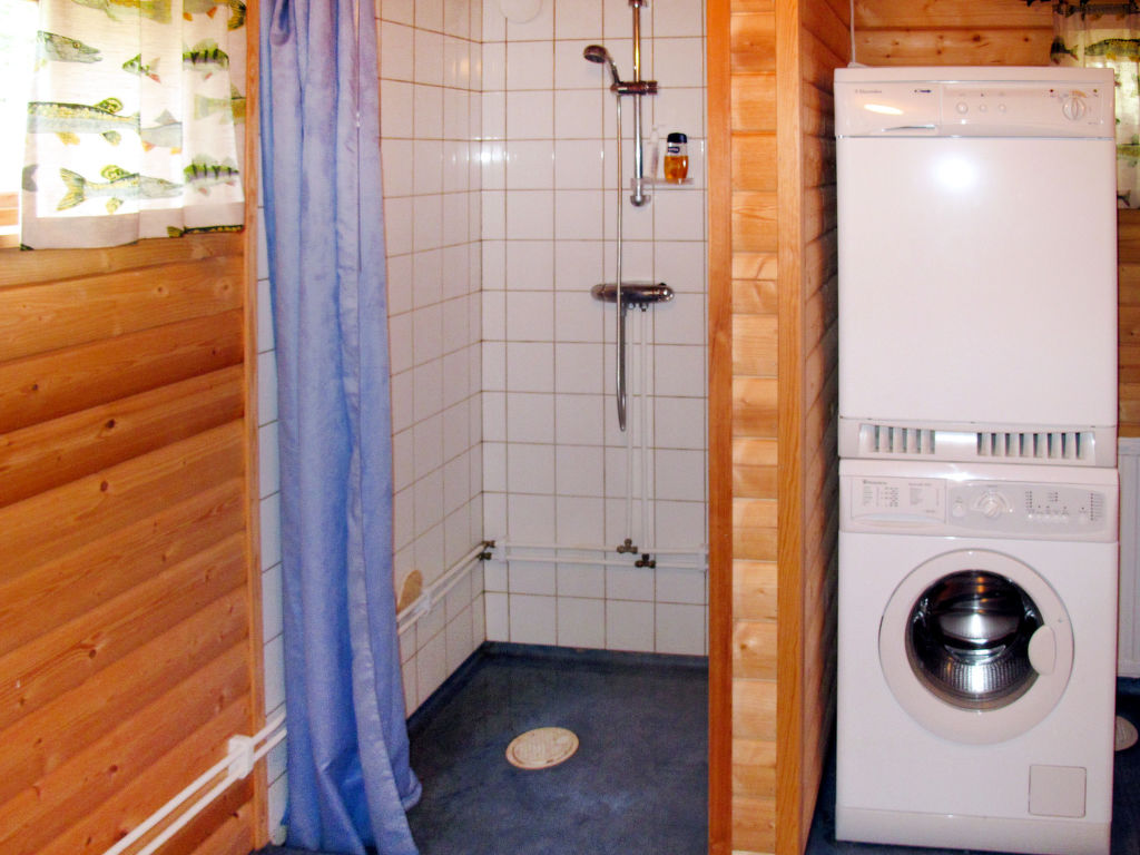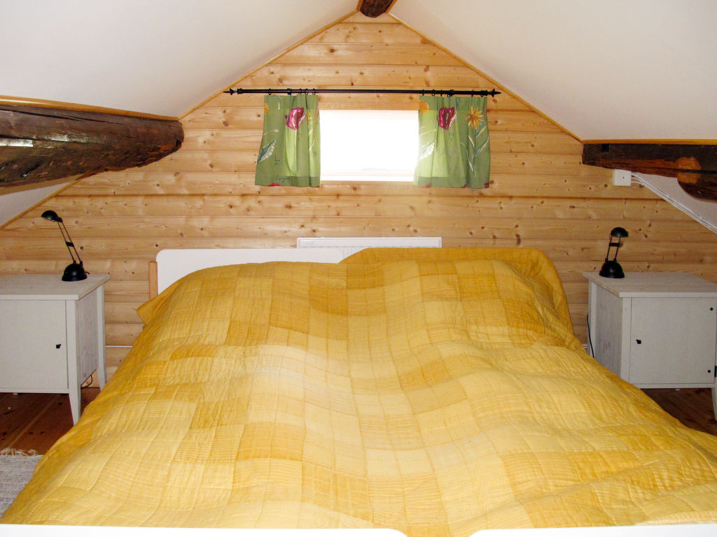 Wohnfläche 80 m². E-Herd 4 Platten, Backofen, Mikrowelle, Geschirrspüler, Kühlschrank ohne Gefrierfach, Kaffeemaschine, Wasserkocher, Toaster, Waschmaschine, Trockner. TV, DVD, CD. Dusche/Sauna. Sep.Verbrennungstoilette. Elektroheizung, Kamin. Steile Treppe ohne Geländer ins Obergeschoss, hier maximale Höhe 1,80 m und Dachschräge. Doppelbett im Erdgeschoss 1,40 m breit. Maximale Belegung: 6 Personen. Flexibilität bei der Bettenaufteilung: Es stehen mehr Schlafmöglichkeiten zur Verfügung als die maximal zugelassene Personenzahl, diese darf dennoch nicht überschritten werden.