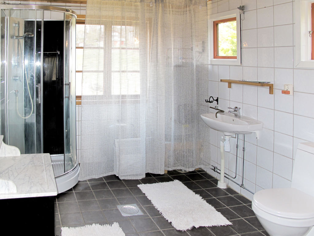 Das gemütliche Ferienhaus steht in Aussichtslage auf einem Ufergrundstück am See Långasjön, 10 km nördlich vom Küstenstädtchen Karlshamn mit guten Einkaufsmöglichkeiten, Cafés und Restaurants sowie Ausflugsbooten in den Schärengarten. Supermarkt in Asarum (5 km). Am ca. 40 m entfernten Ufer rustikale Feuerstelle sowie Boots- und Badesteg zur gemeinsamen Nutzung mit den Gästen des benachbarten Ferienhauses BLE 107. Ruderboot vorhanden (zusätzliche Kaution). Der See bietet beste Angel- und Paddelbedingungen. Angeln auf Edelfisch im See Kroksjön (2 km). Schöner Sandbadestrand mit geschütztem Kinderbereich beim Campingplatz (4 km), gut mit dem Auto erreichbar. Hier auch Kanu- und Fahrradvermietung sowie Anschluss an markierte Rundwege (1-8 km lang). Das Haus steht zusammen mit dem Ferienhaus BLE 107 auf einem zum See hin abfallenden, teilweise umzäunten Naturgrundstück (ca. 3000 m²). Veranda mit Gartenmöbeln und transportablem Grill. 3 Parkmöglichkeiten auf dem Grundstück.