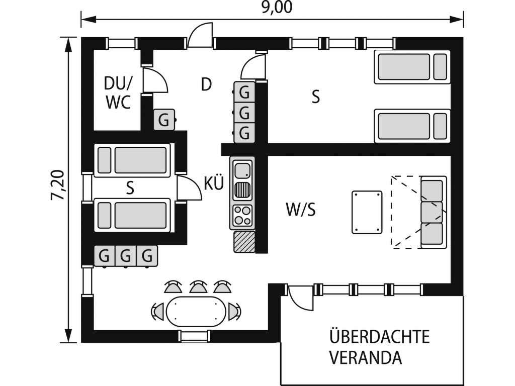Wohnfläche 62 m². E-Herd 4 Platten, Backofen, Holzofen, Mikrowelle, Kühlschrank, Gefrierschrank (ca. 60 l), Kaffeemaschine, Wasserkocher, Toaster, Waschmaschine. Sat-TV (deutsche Programme), DVD, CD, Internetzugang (WLAN, inklusive). Dusche/WC. Elektroheizung.