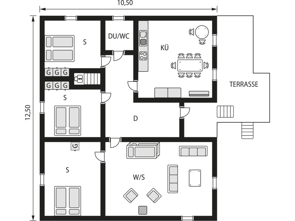 Wohnfläche 130 m². E-Herd 4 Platten, Backofen, Mikrowelle, Geschirrspüler, Kühlschrank, Gefrierschrank (ca. 90 l), Kaffeemaschine, Wasserkocher, Toaster. Sat-TV (deutsche Programme). Dusche/WC. Zentrale Holzheizung, Kamin. Eine kleine Einliegerwohnung im Untergeschoss wird zeitweise bewohnt. Waschmaschine zur gemeinschaftlichen Nutzung im Keller (separater Zugang) von Ferienhaus OST 100. OST 100-104 sind benachbart.