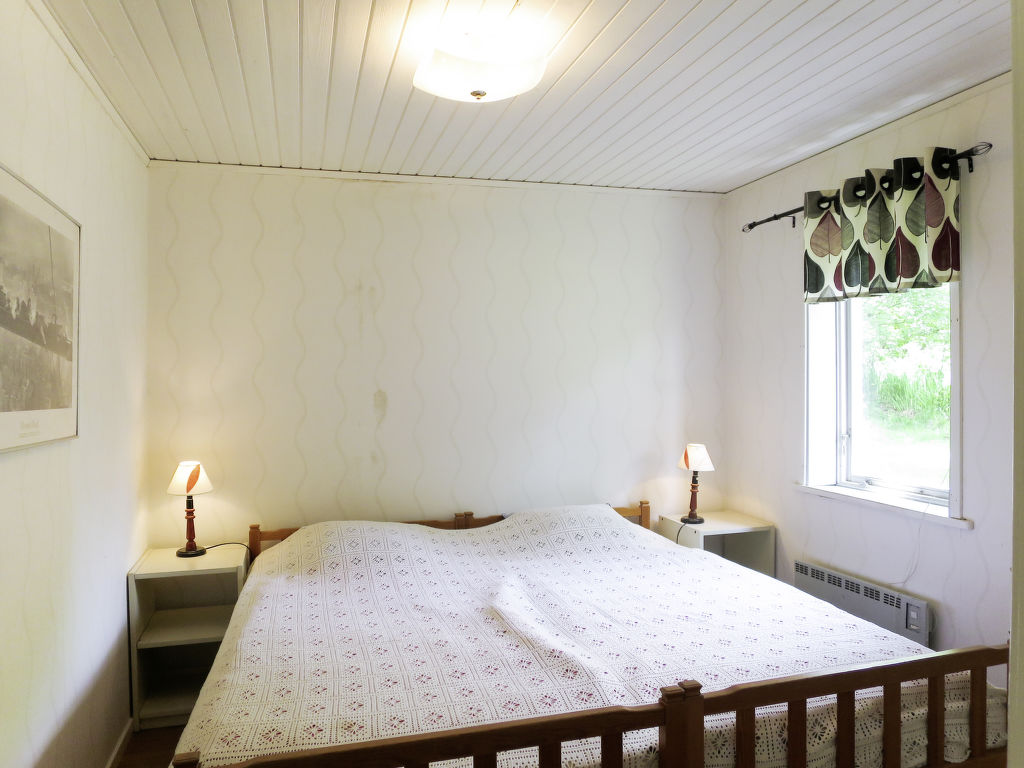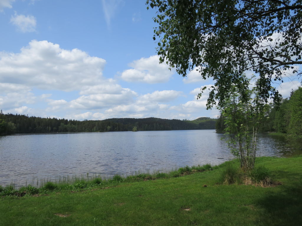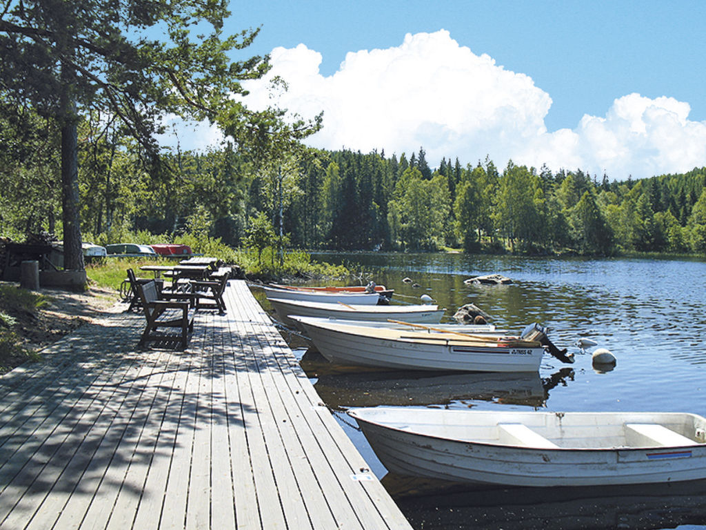 Ansprechendes Ferienhaus mit Blick auf den ca. 200 m entfernten See Vitasjön, 50 km südlich von Borås, 100 km südöstlich von Göteborg. Kaufmann in Kalv (12 km). Flach abfallender Badeplatz mit Steg und Liegewiese ca. 200 m. Ruderboot auf Bestellung zu mieten, SEK 110 pro Tag. Gutes Angel- und Paddelgebiet, in 1 km Entfernung der Lachs- und Kanufluss Ätran. Kanu zu mieten, SEK 100 pro Tag, zur gemeinsamen Nutzung nach Absprache mit Ferienhaus VGT 146. Fahrradvermietung in Svenljunga (25 km). Das Haus ist gut und gemütlich eingerichtet, in hellen freundlichen Farben, Holzdielen- und Fliesenböden. Lage auf einer kleinen Anhöhe, in einem Sommerhausgebiet mit etwa 20 weiteren Häusern und Nachbarn ab ca. 25 m. Leicht abfallendes, etwa 1400 m² großes Naturgrundstück mit Baumbestand. Schöne wind- und sichtgeschützte Terrasse, Gartenmöbel, transportabler Grill. 2 Parkmöglichkeiten auf dem Grundstück, Kiesweg zum Haus.